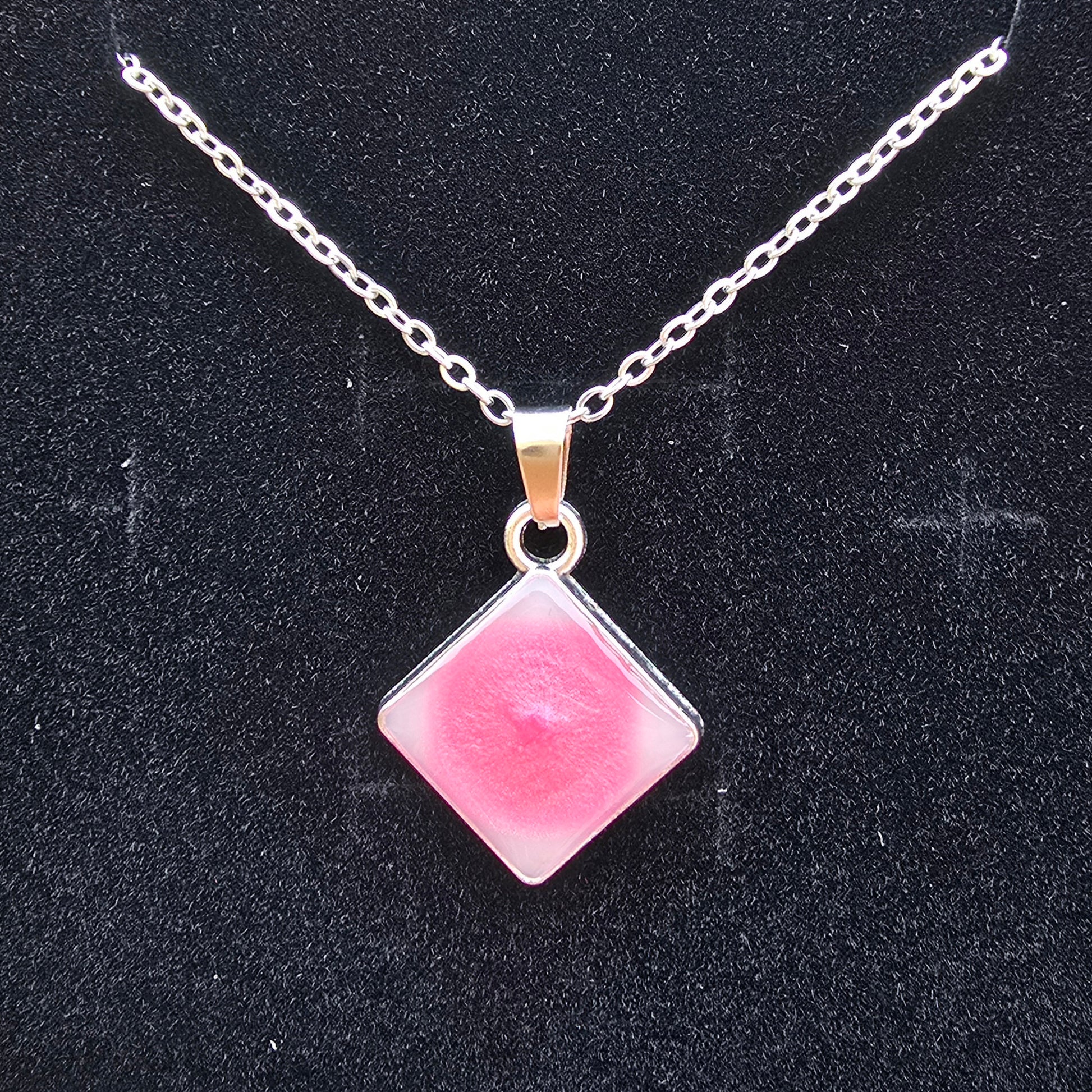 Stainless steel diamond shaped pendant, inlaid with various colors of materials and designs,some contain glow
