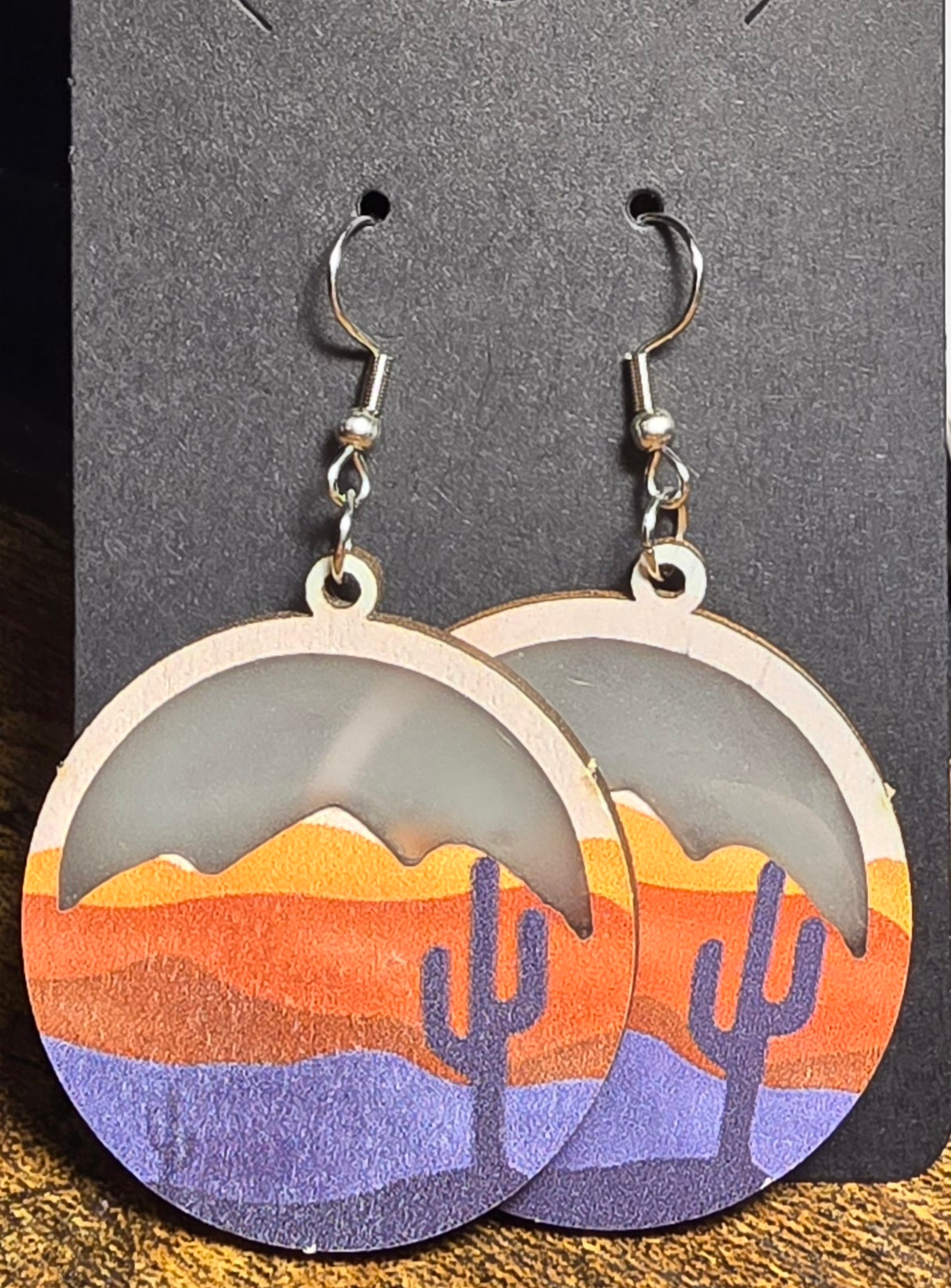 Dangle style earrings, stainless steel hooks, inlaid with resin