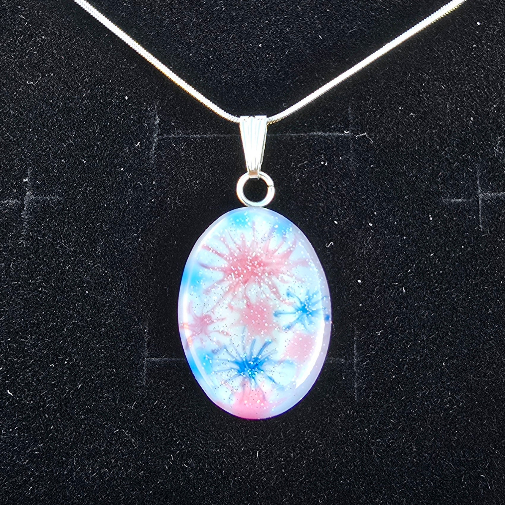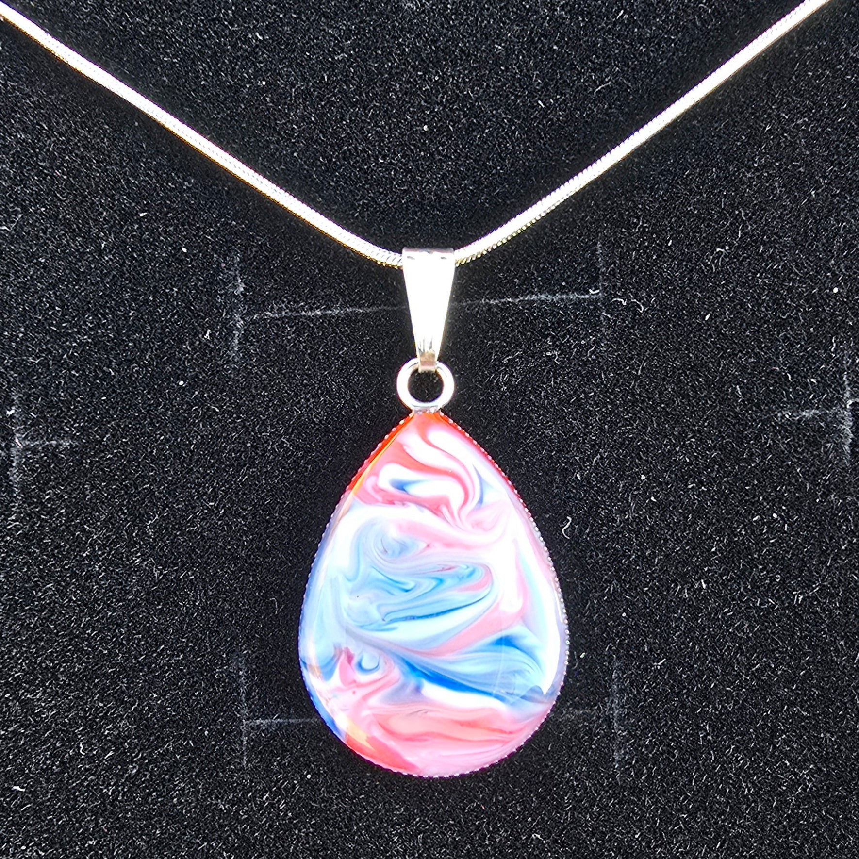 Stainless steel, inlaid with various patterns of red, white and blue resin