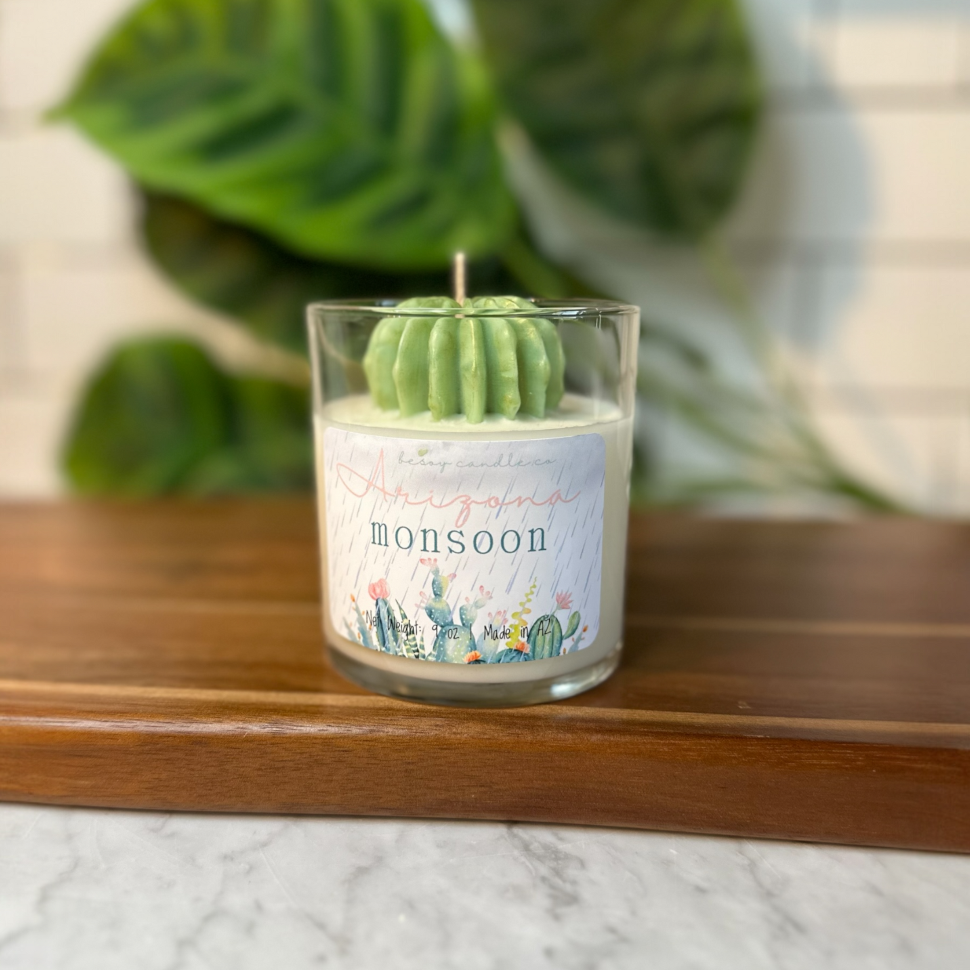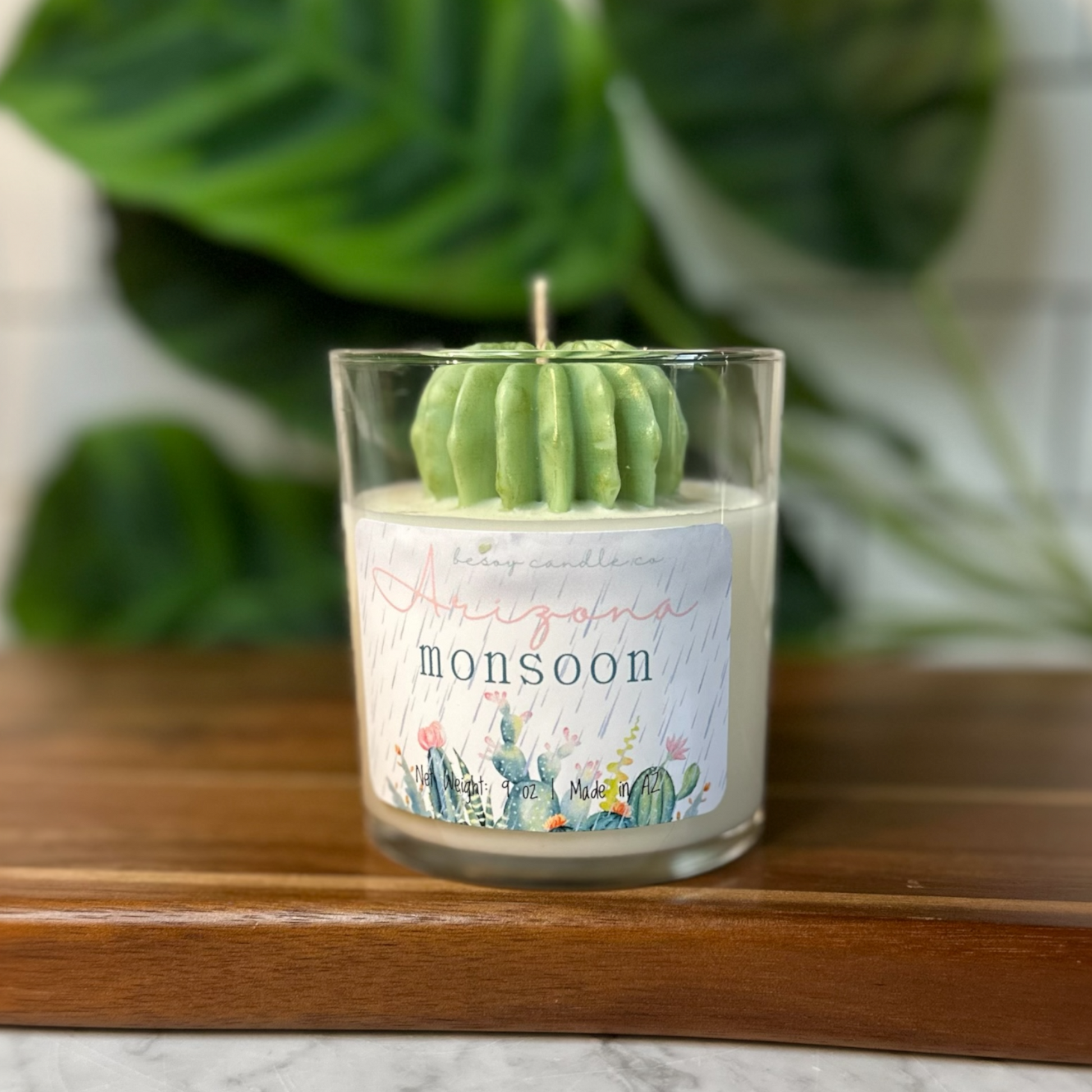 Inspired by the dramatic weather phenomenon of the Arizona desert, this candle captures the refreshing aroma of rain on parched earth, bringing a touch of nature’s beauty into your home. Whether you’re a desert dweller longing for the soothing sound of rain or simply seeking a unique and refreshing fragrance like the Creosote Bush, the Arizona Monsoon Candle is sure to transport you to a desert oasis.
