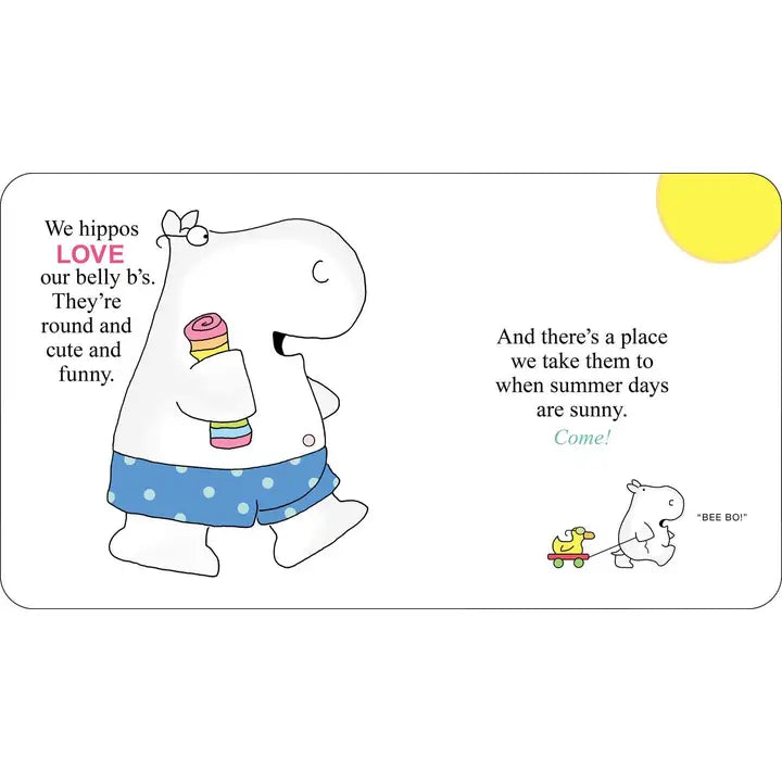 [Little Simon] Shiny, sturdy, and featuring a navel-shaped die-cut cover, this board book from bestselling and beloved Sandra Boynton provides enduring, giggly, read-aloud fun. Hoping for hippos? Take a look! They’re in this Belly Button Book! Featuring a beachful of bare-bellied hippos—including one tiny baby who only says BEE BO!—this quirky book captivates with inimitable illustrations and joyful rhyming text. Belly Belly Button, You’re oh so fine! Ooo, Belly Button I’m so happy you’re mine!