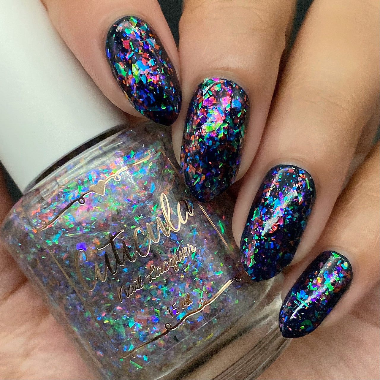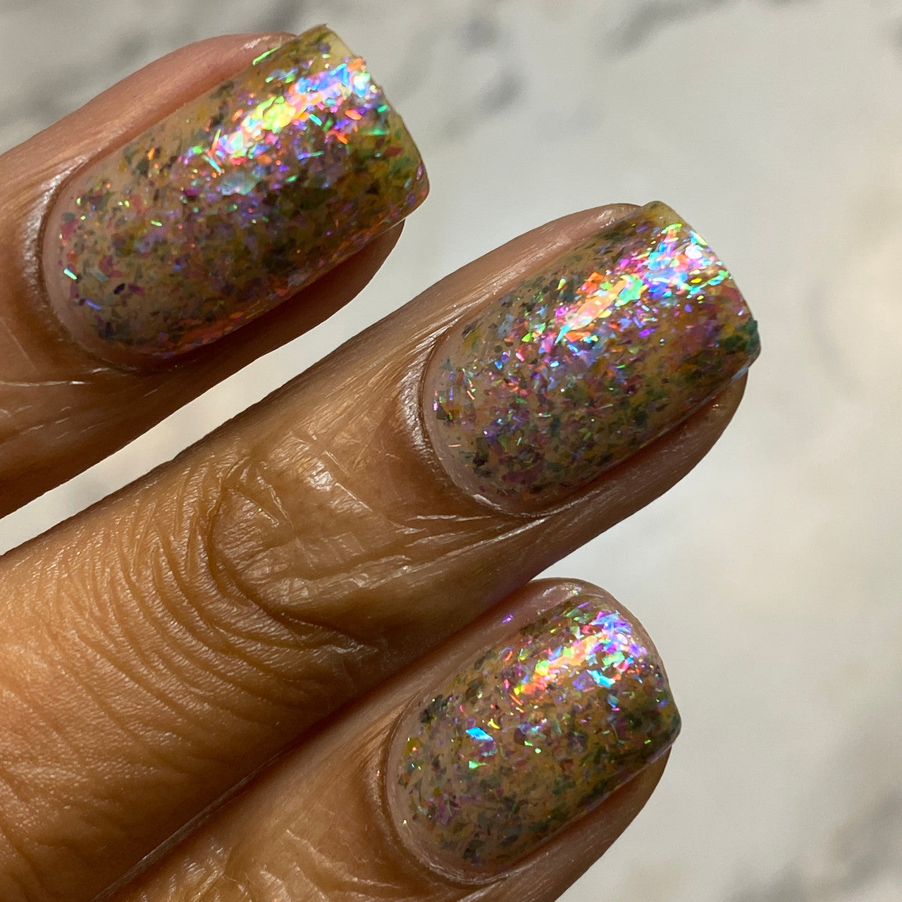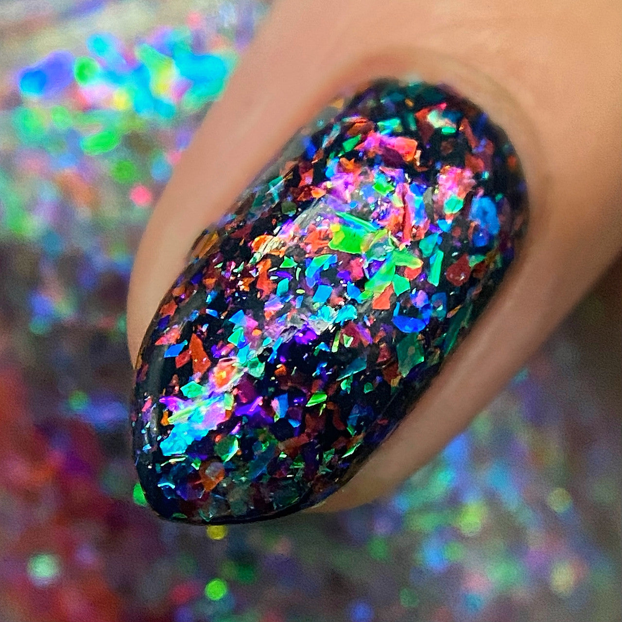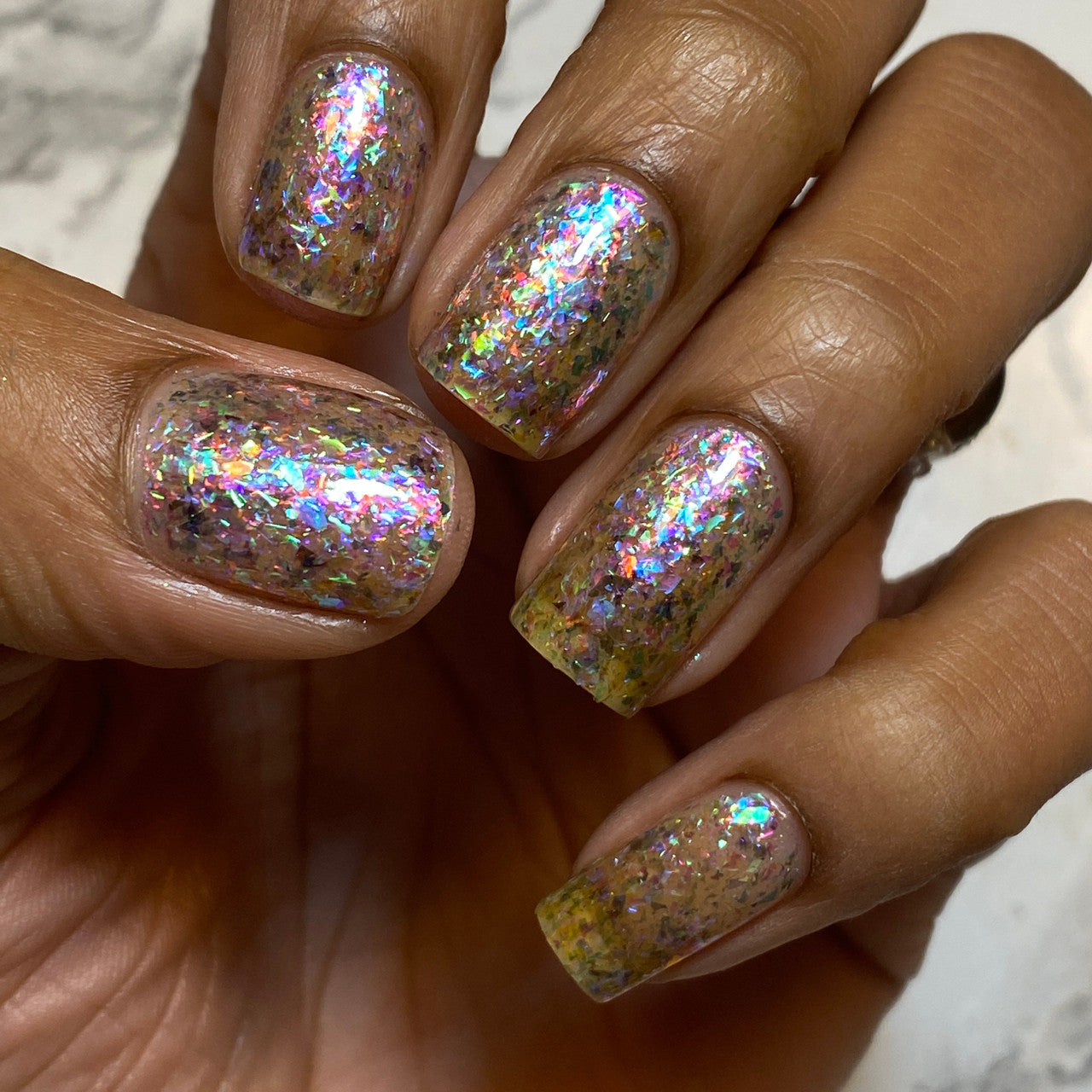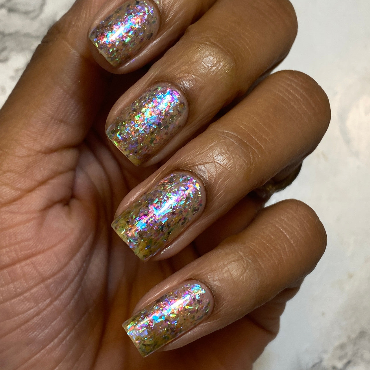 Please note that all 5 polishes (except the topper) were created to be worn in 3 coats. The third final coat really gives you the best color depth and flake payoff. For best results, start with any of our available base coats and finish off your mani with any of our available top coats. This nail polish is 5 Free Ingredients: Nitrocellulose, Ethyl Acetate, Butyl Acetate, Isopropyl Alcohol, Ethyl Alcohol, Triphenyl Phosphate, Propyl Acetate, n-Butyl Alcohol, Colorants. Swatches @happily_polished @andrussnails @lovelylacquerist @kreativelykoated @_always_polished_ @brown_beautycentral @polishwithrae @themermaidpolish