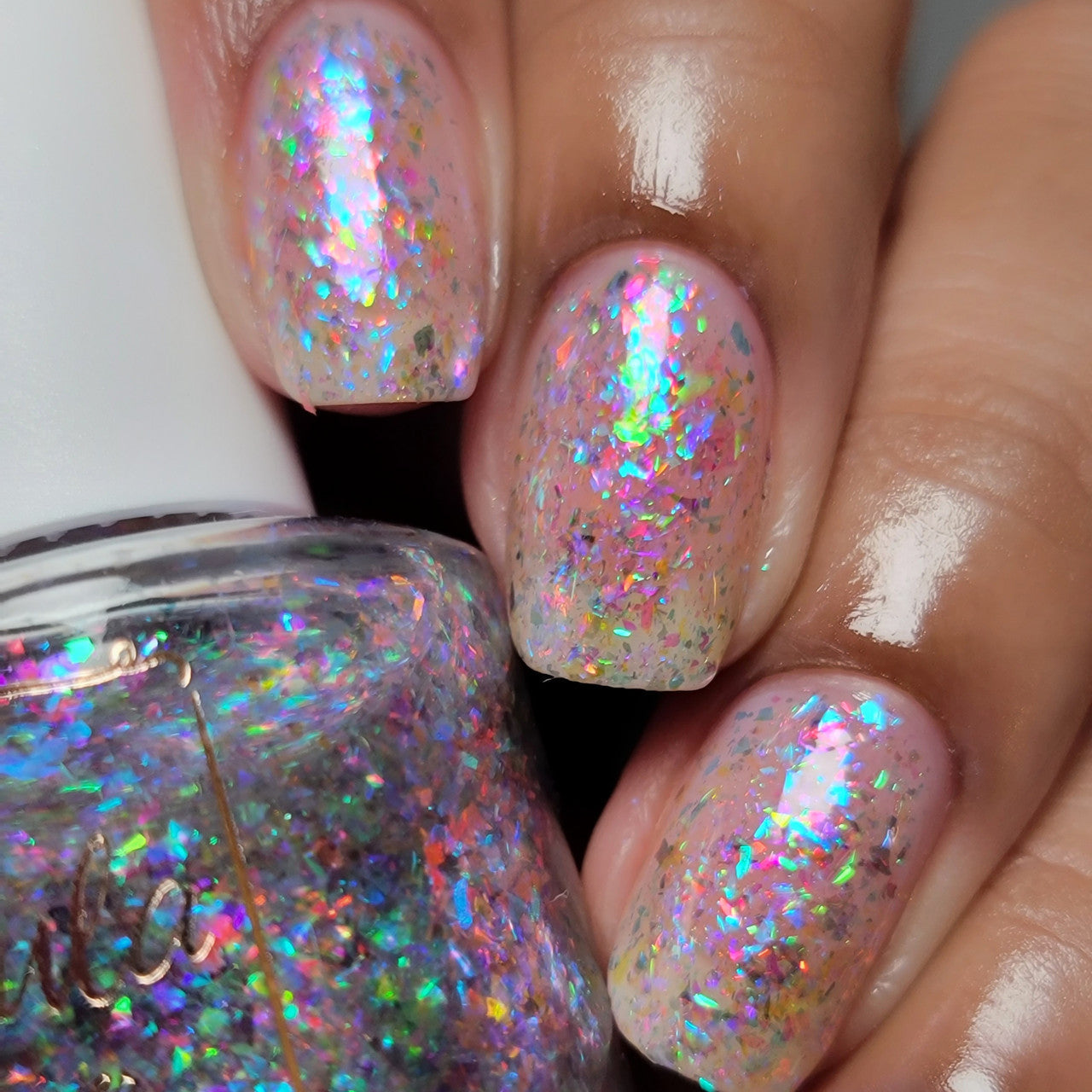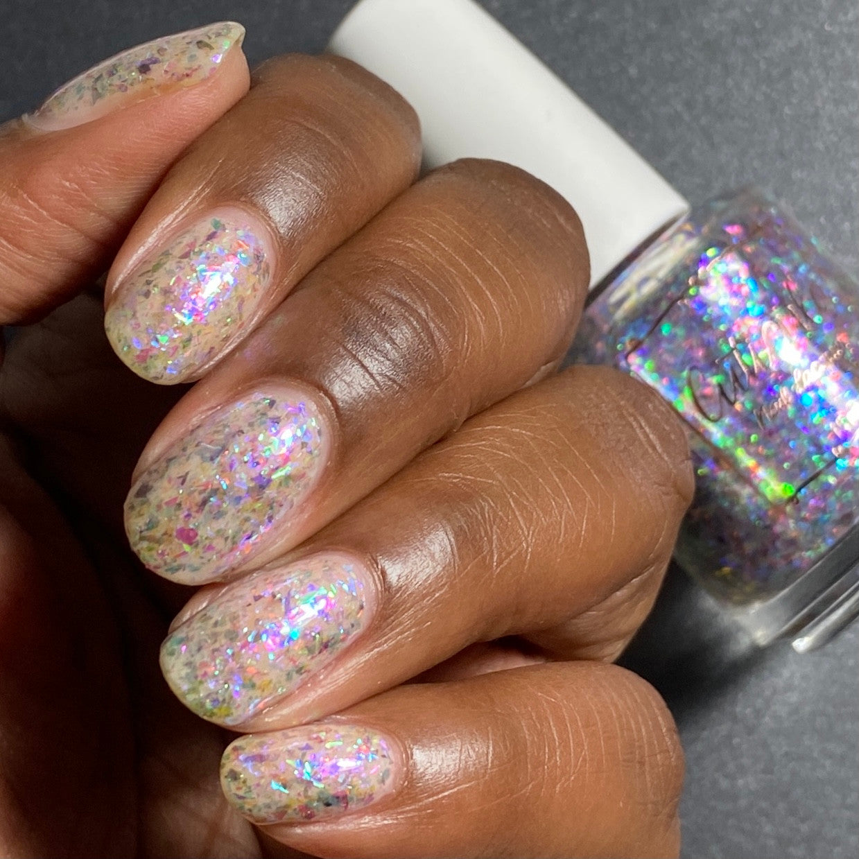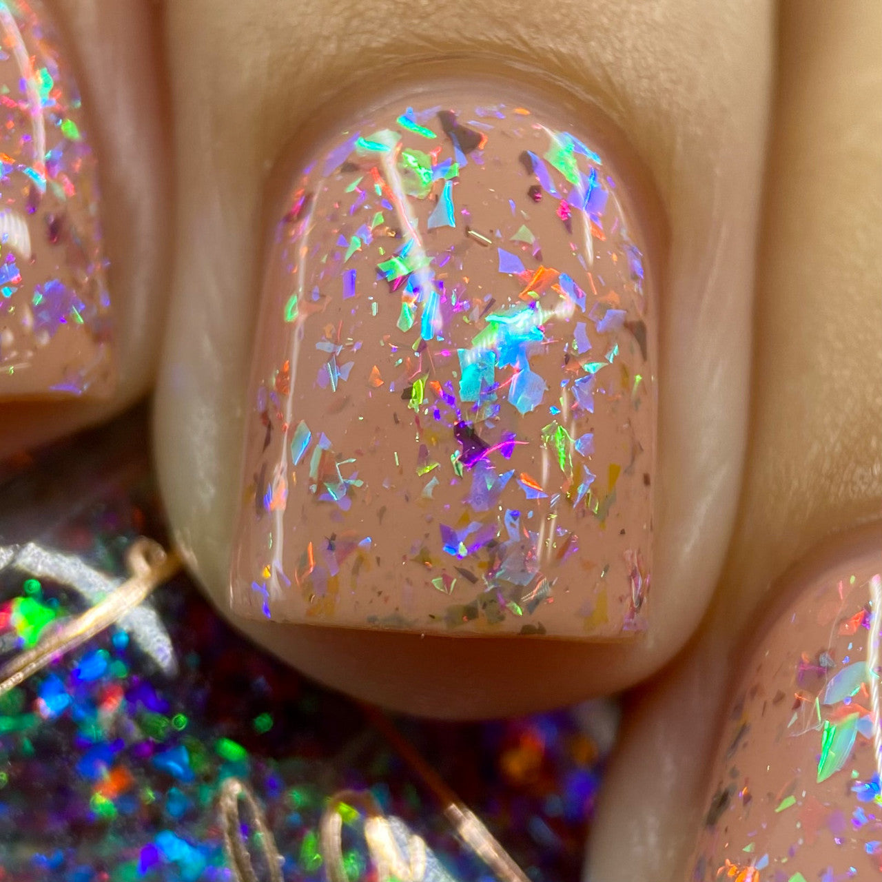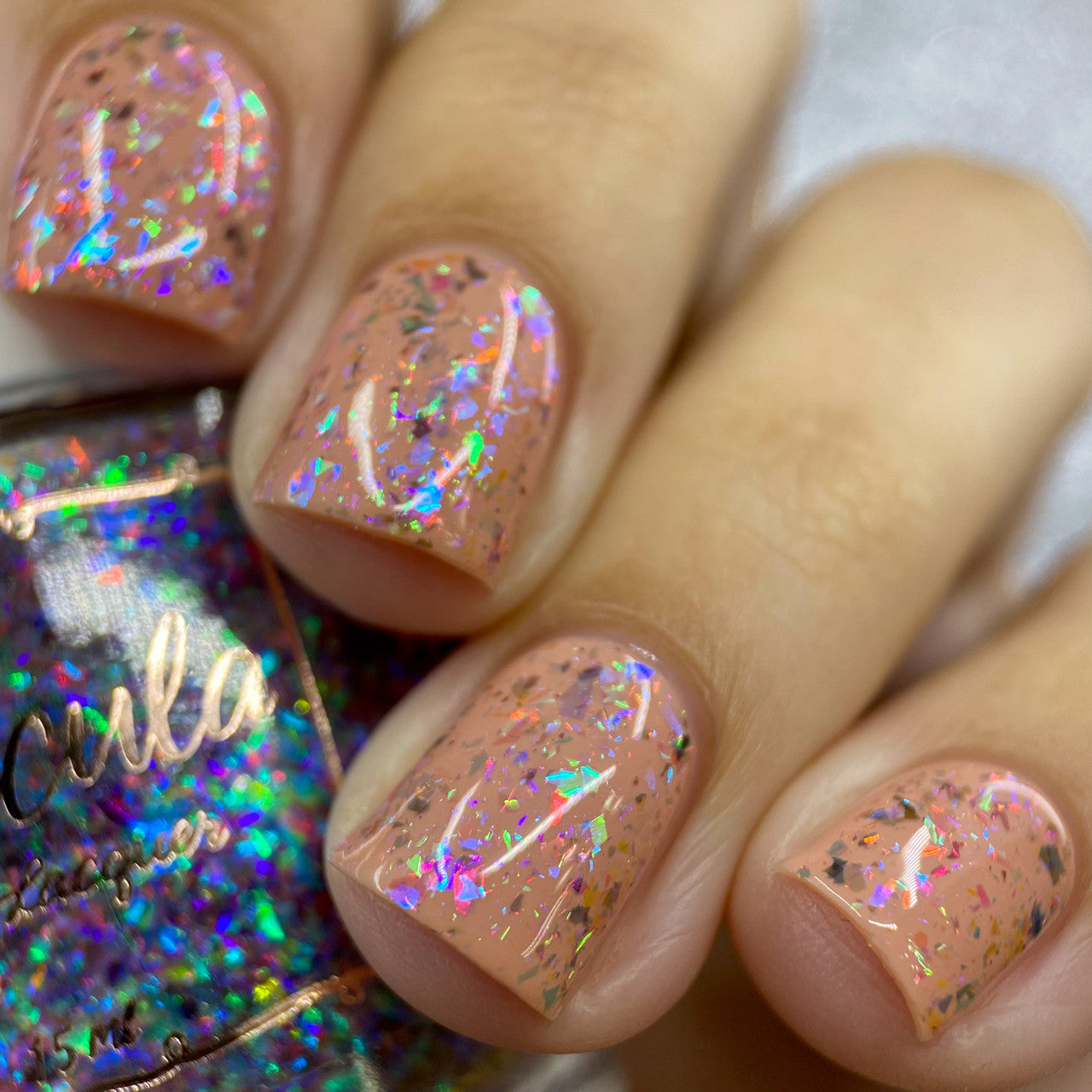Please note that all 5 polishes (except the topper) were created to be worn in 3 coats. The third final coat really gives you the best color depth and flake payoff. For best results, start with any of our available base coats and finish off your mani with any of our available top coats. This nail polish is 5 Free Ingredients: Nitrocellulose, Ethyl Acetate, Butyl Acetate, Isopropyl Alcohol, Ethyl Alcohol, Triphenyl Phosphate, Propyl Acetate, n-Butyl Alcohol, Colorants. Swatches @happily_polished @andrussnails @lovelylacquerist @kreativelykoated @_always_polished_ @brown_beautycentral @polishwithrae @themermaidpolish