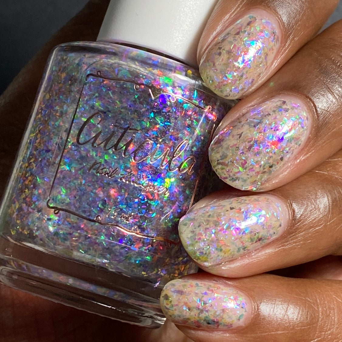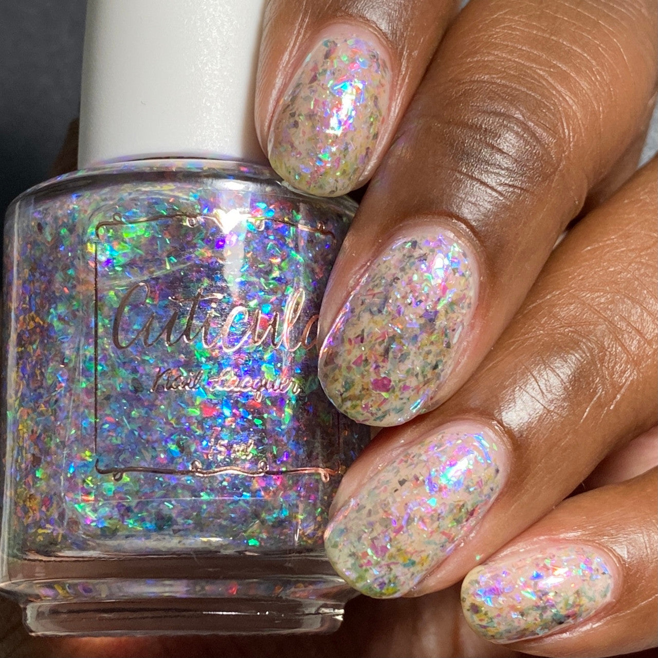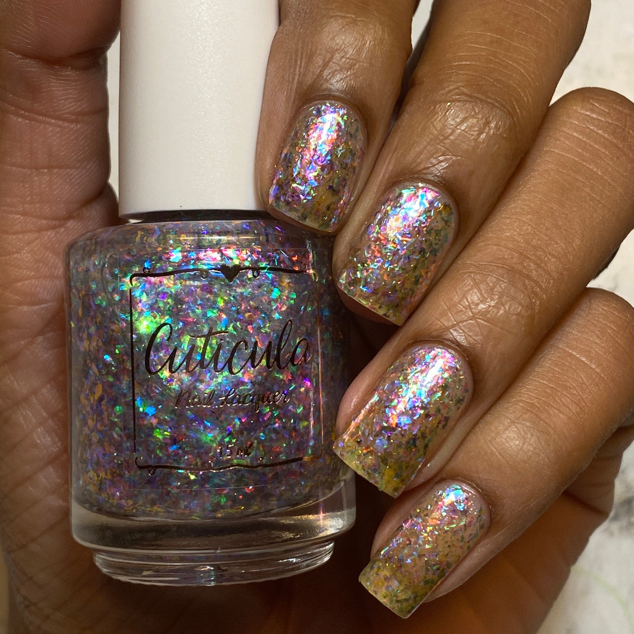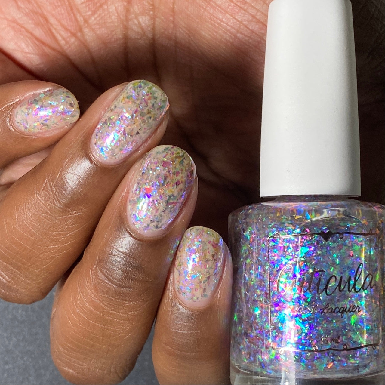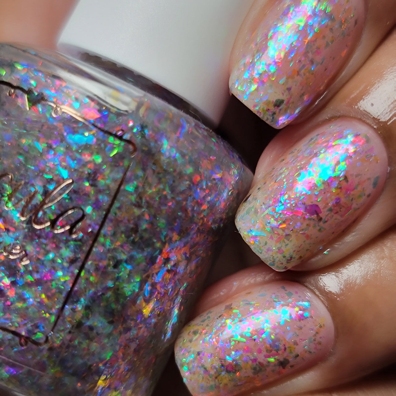 Please note that all 5 polishes (except the topper) were created to be worn in 3 coats. The third final coat really gives you the best color depth and flake payoff. For best results, start with any of our available base coats and finish off your mani with any of our available top coats. This nail polish is 5 Free Ingredients: Nitrocellulose, Ethyl Acetate, Butyl Acetate, Isopropyl Alcohol, Ethyl Alcohol, Triphenyl Phosphate, Propyl Acetate, n-Butyl Alcohol, Colorants. Swatches @happily_polished @andrussnails @lovelylacquerist @kreativelykoated @_always_polished_ @brown_beautycentral @polishwithrae @themermaidpolish