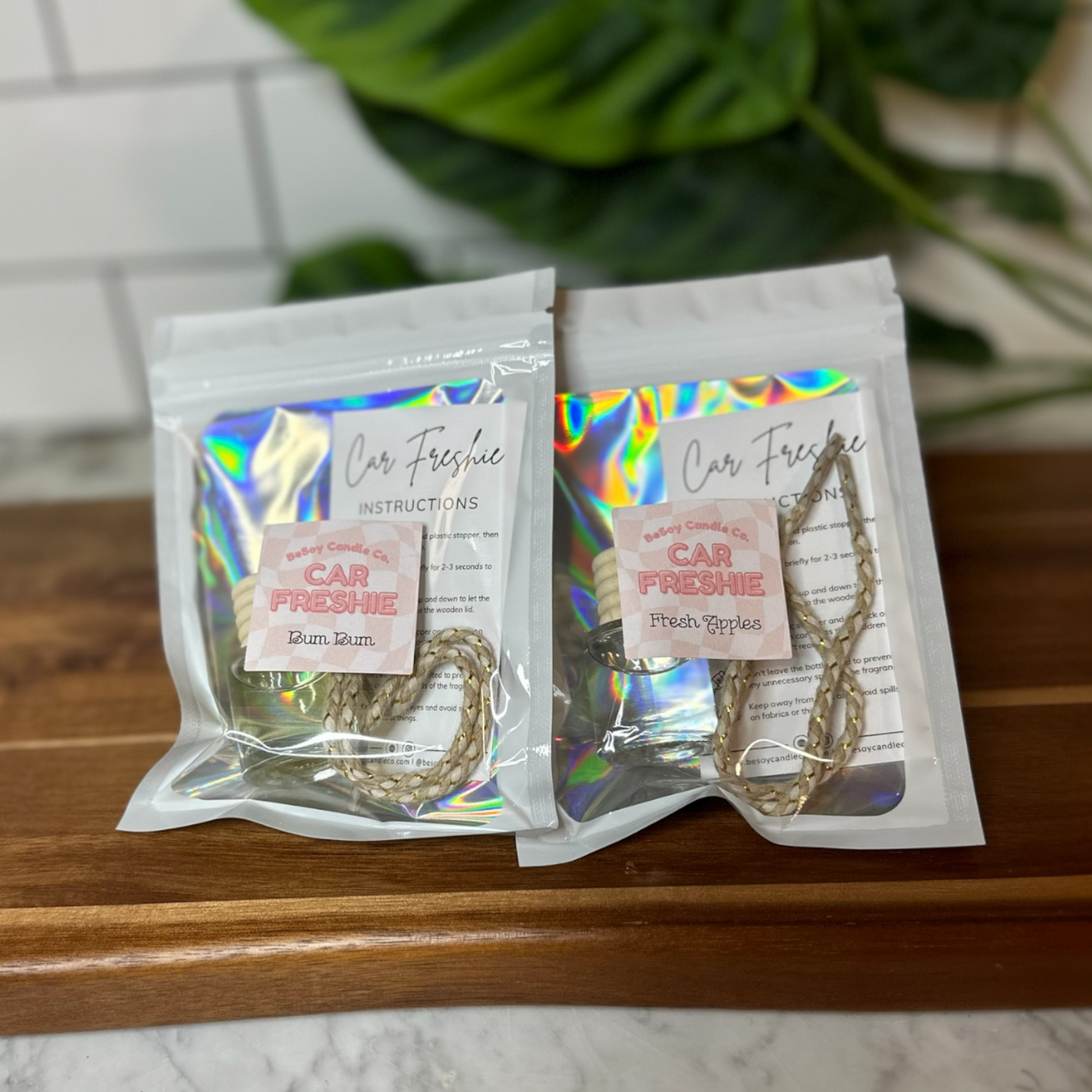 Keep your car smelling fresh and inviting with our Car Freshie. This convenient air freshener is designed to hang from your rearview mirror, providing long-lasting fragrance wherever you go. Infused with high-quality fragrance oils, our Car Freshie is available in a variety of delightful scents to suit your preferences. Whether you’re commuting to work, running errands, or going on a road trip, our Car Freshie is the perfect companion to keep your vehicle smelling clean and inviting.