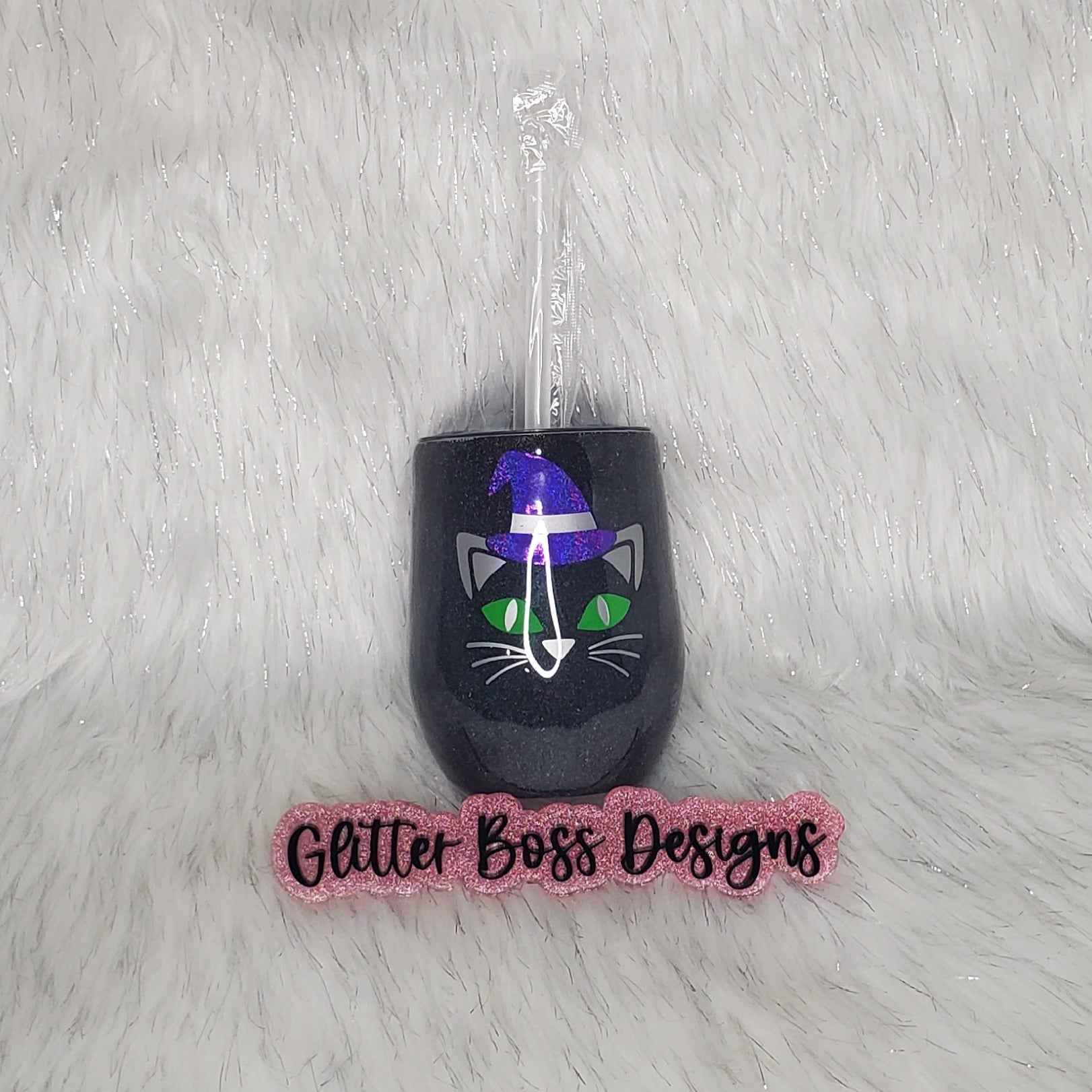 Cat - 12 oz Wine - Glitter Boss