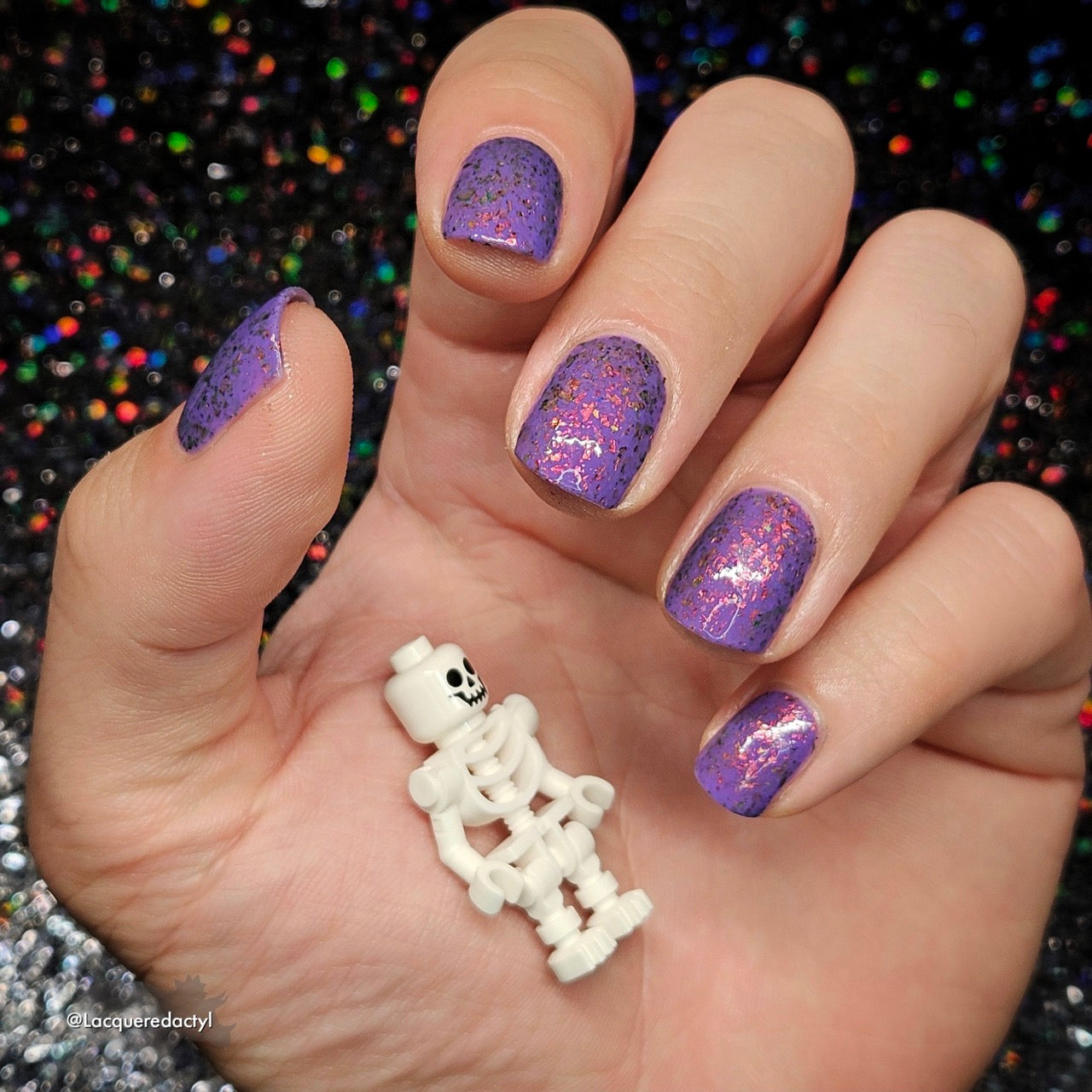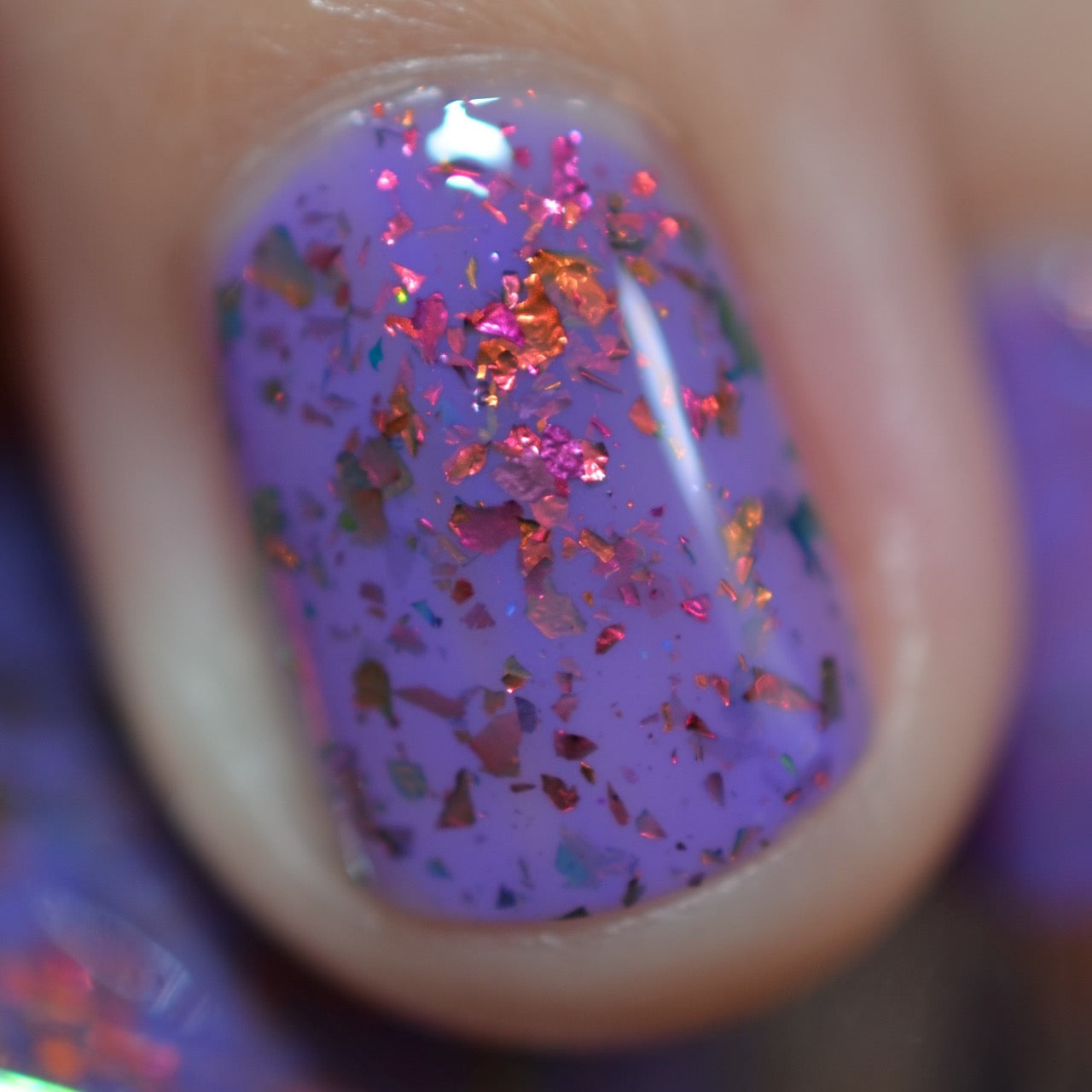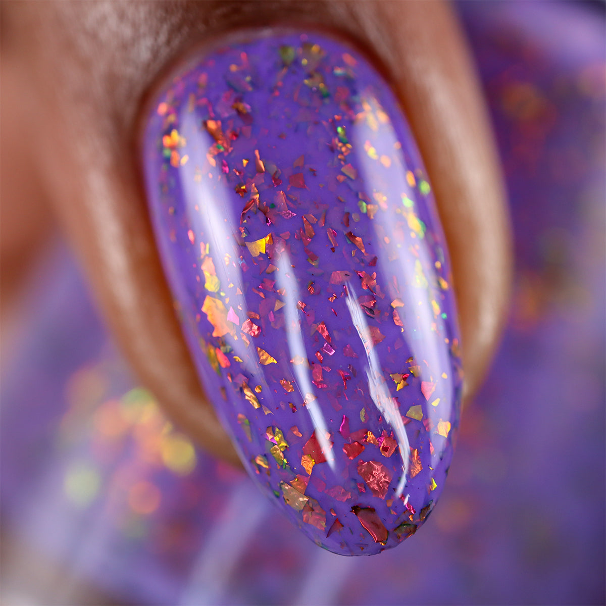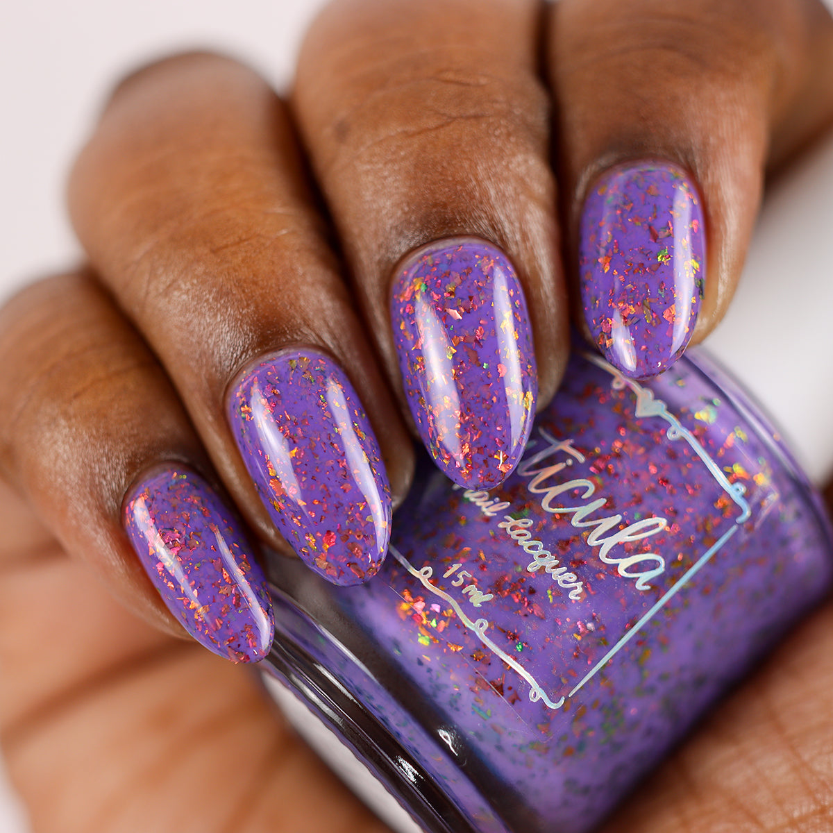 'Creepin it Real' a bright violet crelly with orange/red/green/gold shifting ultra chrome flakes. Photos By: @caitlinswatches @heeymercedes @doseoflolade @lacqueredactyl @lovemesomesparkle @gaby_polish @jenniferdufoe03 @polishwithrae @idream.of.lacquer @thepolishedmage For best results, start with any of our available base coats and finish off your mani with any of our available top coats. This nail polish is 5 Free: Ingredients: Nitrocellulose, Ethyl Acetate, Butyl Acetate, Isopropyl Alcohol, Ethyl Alcohol, Triphenyl Phosphate, Propyl Acetate, n-Butyl Alcohol, Colorants.
