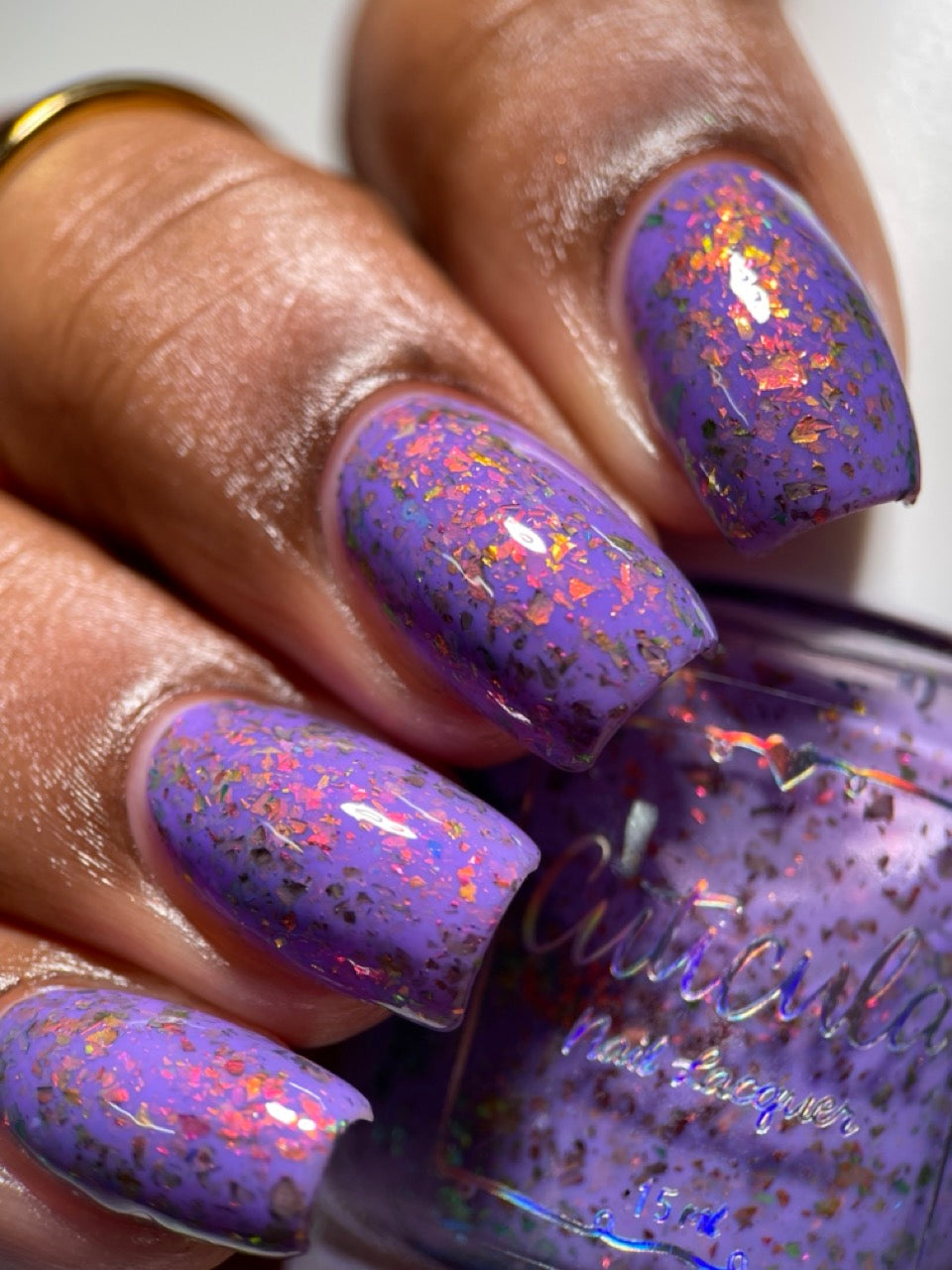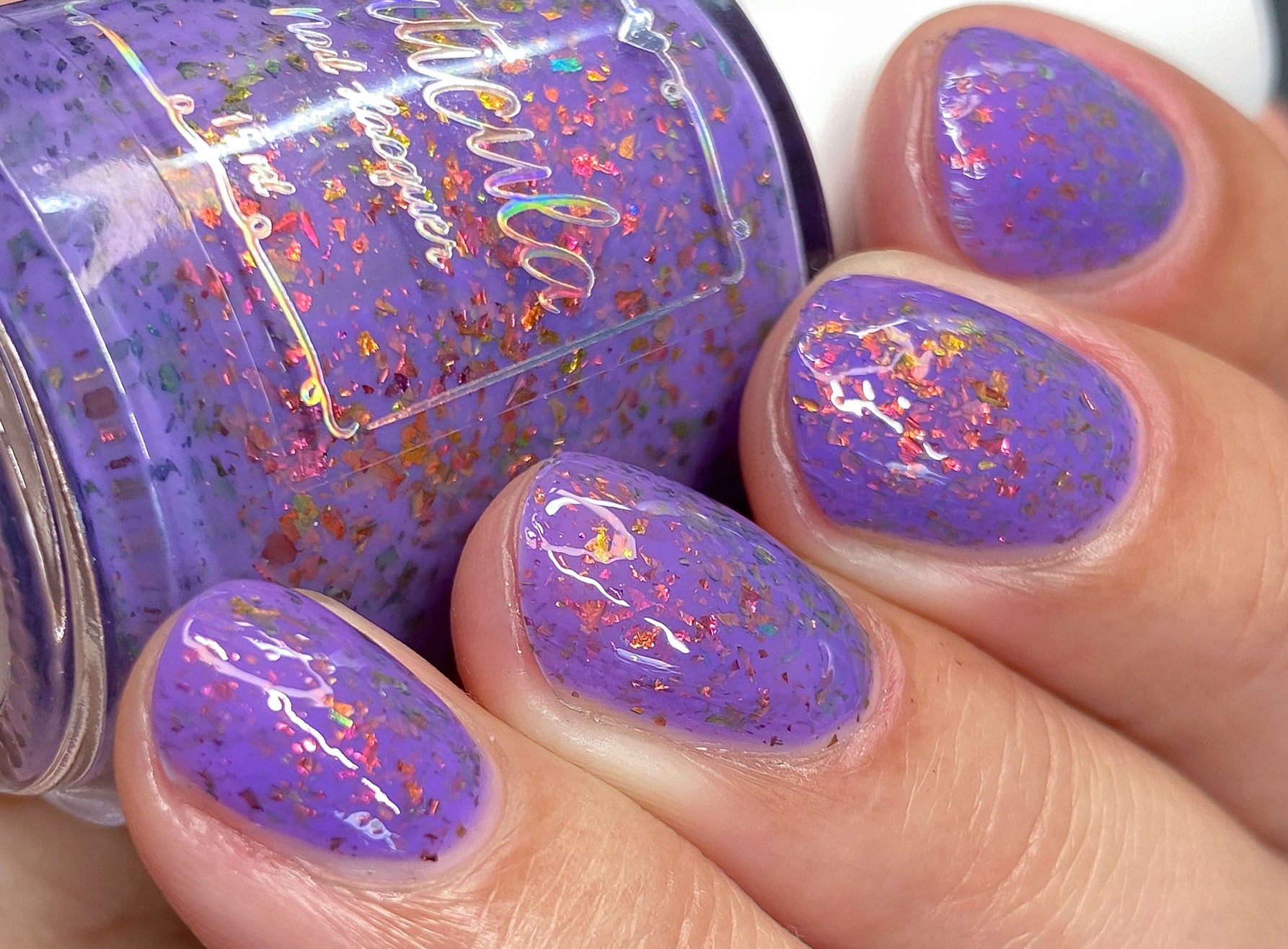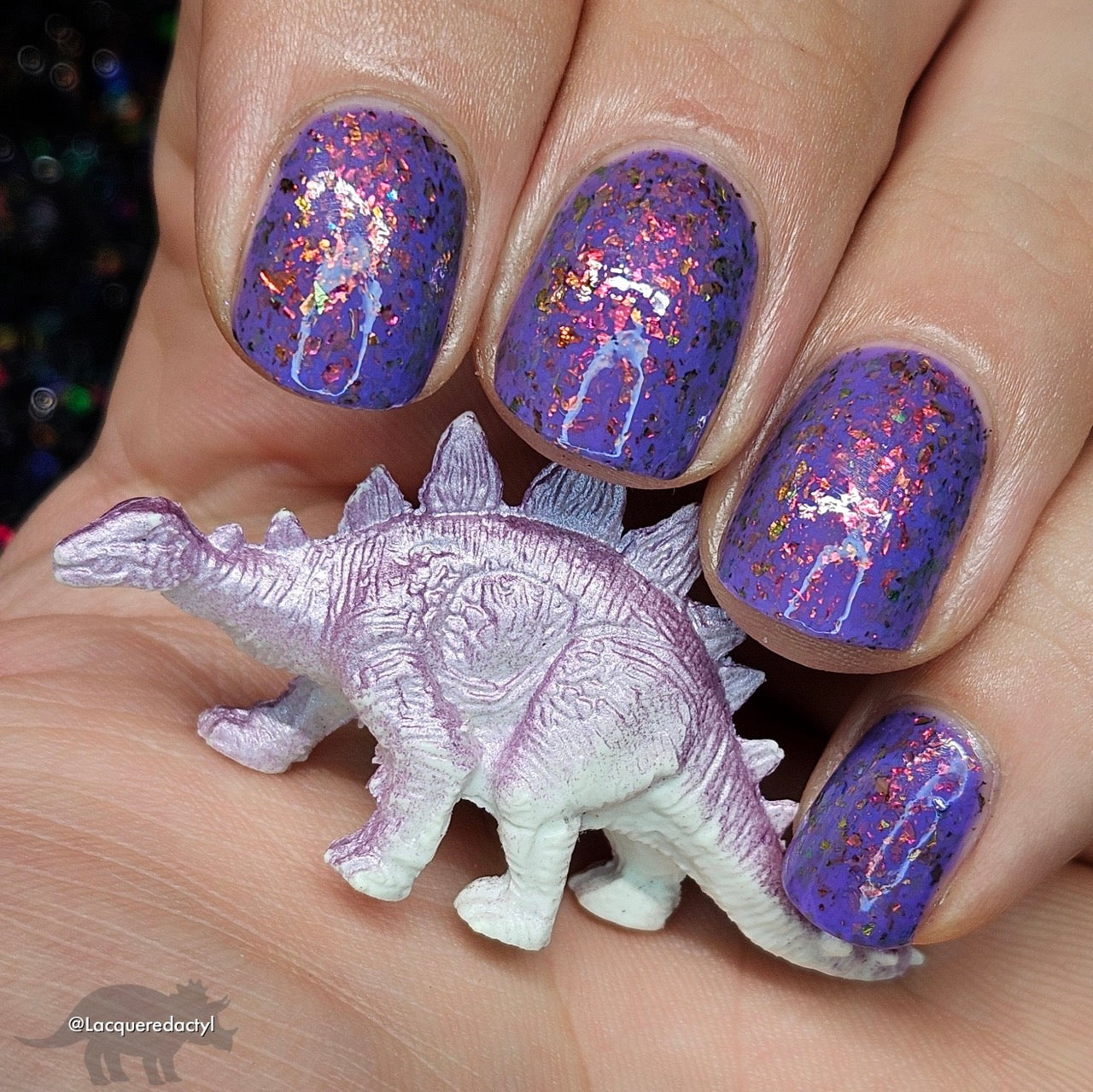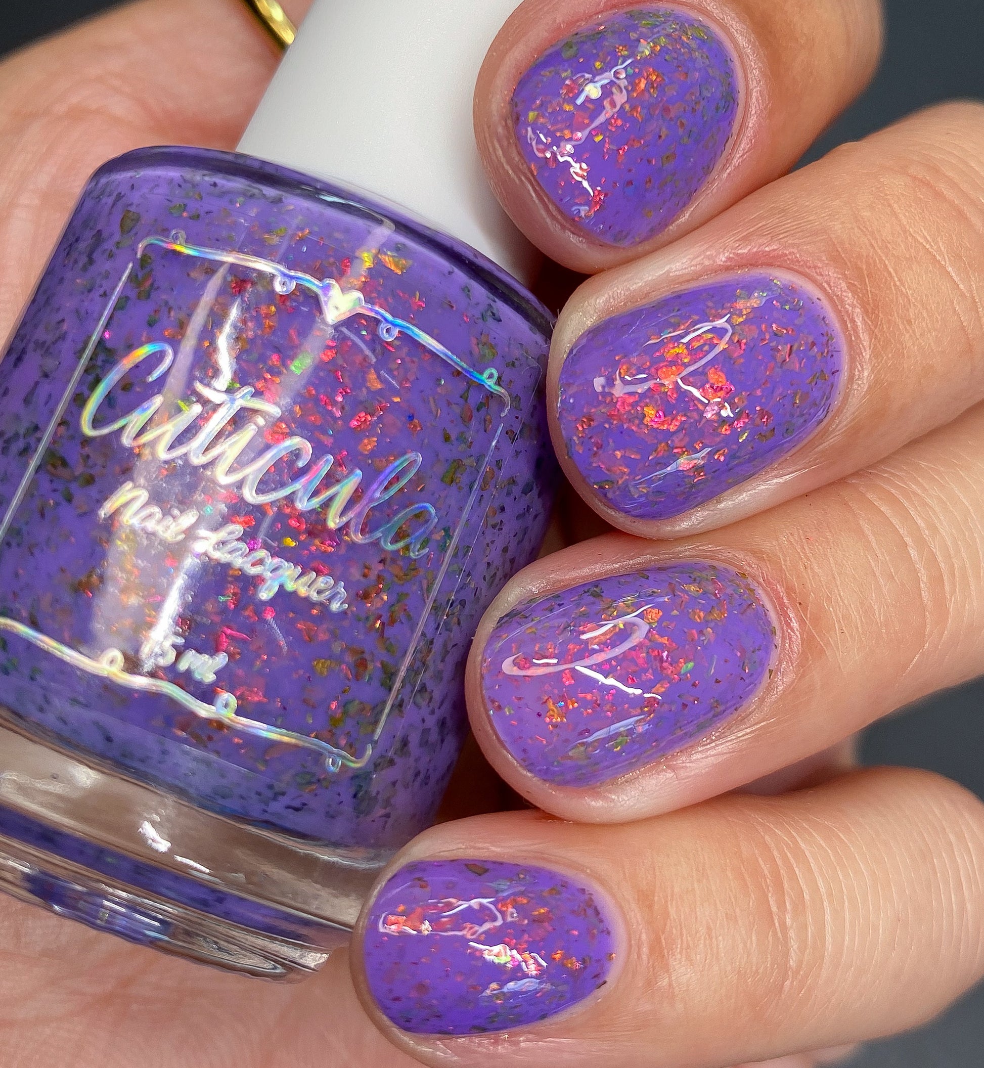 'Creepin it Real' a bright violet crelly with orange/red/green/gold shifting ultra chrome flakes. Photos By: @caitlinswatches @heeymercedes @doseoflolade @lacqueredactyl @lovemesomesparkle @gaby_polish @jenniferdufoe03 @polishwithrae @idream.of.lacquer @thepolishedmage For best results, start with any of our available base coats and finish off your mani with any of our available top coats. This nail polish is 5 Free: Ingredients: Nitrocellulose, Ethyl Acetate, Butyl Acetate, Isopropyl Alcohol, Ethyl Alcohol, Triphenyl Phosphate, Propyl Acetate, n-Butyl Alcohol, Colorants.