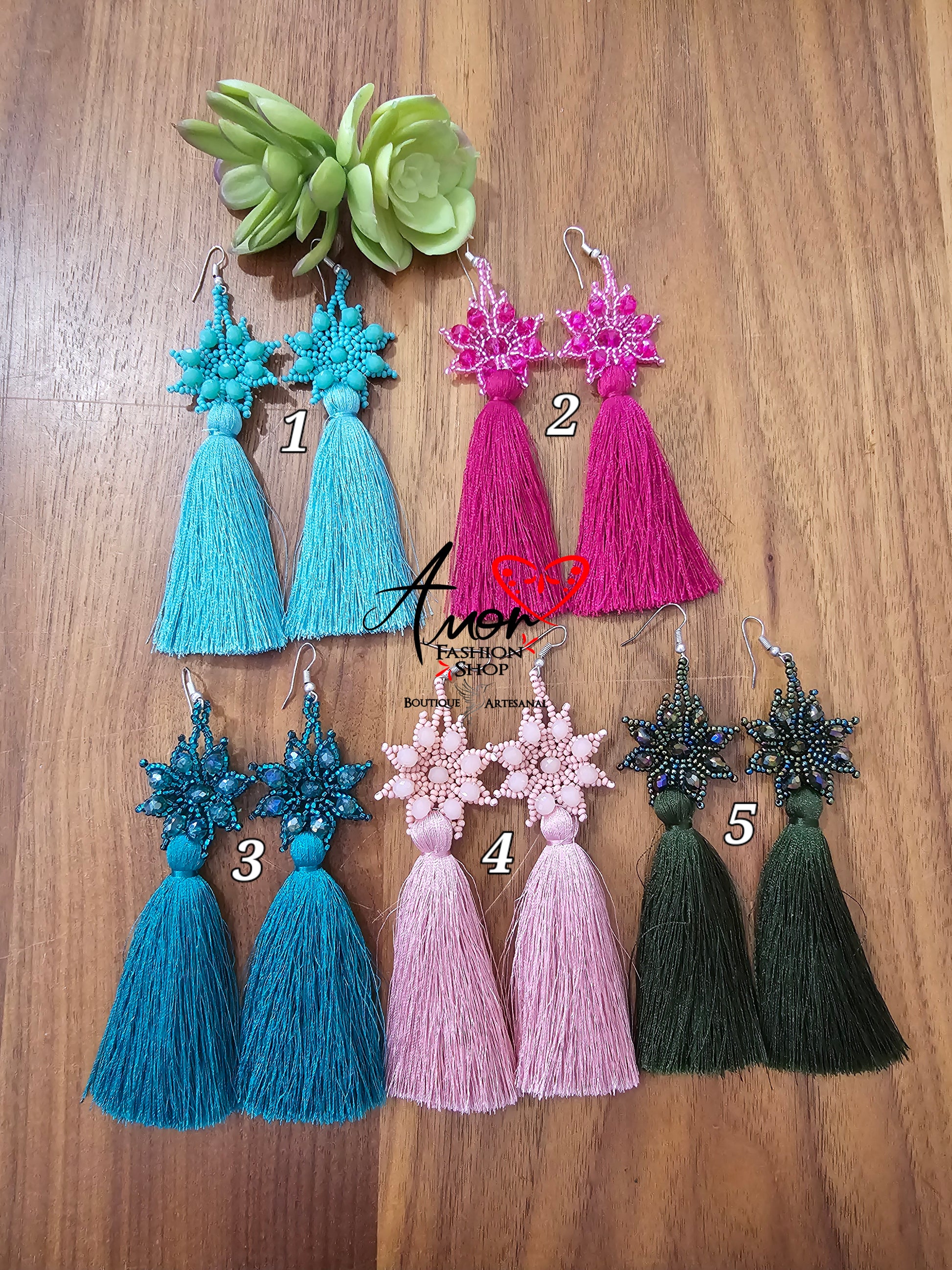 ModernTelar Embroidered Tassel Earrings / Aretes colgantes Bordado Telar Modernos Artesanales