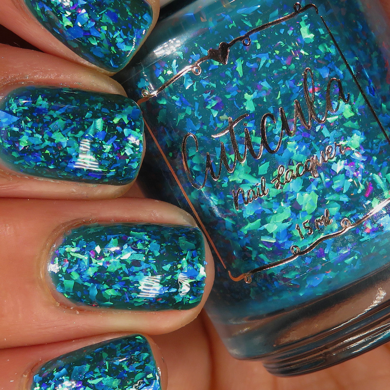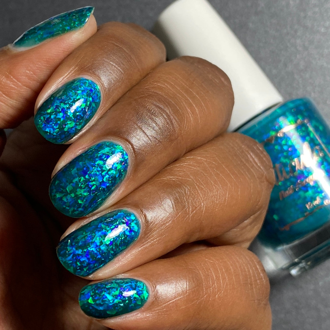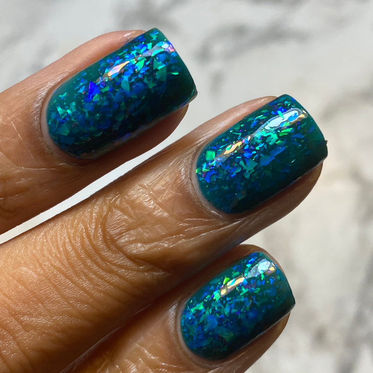 Please note that all 6 polishes were created to be worn in 3 coats. The third final coat really gives you the best color depth and flake payoff. For best results, start with any of our available base coats and finish off your mani with any of our available top coats. This nail polish is 5 Free Ingredients: Nitrocellulose, Ethyl Acetate, Butyl Acetate, Isopropyl Alcohol, Ethyl Alcohol, Triphenyl Phosphate, Propyl Acetate, n-Butyl Alcohol, Colorants. Swatches @happily_polished @andrussnails @lovelylacquerist @kreativelykoated @_always_polished_ @brown_beautycentral @polishwithrae @themermaidpolish