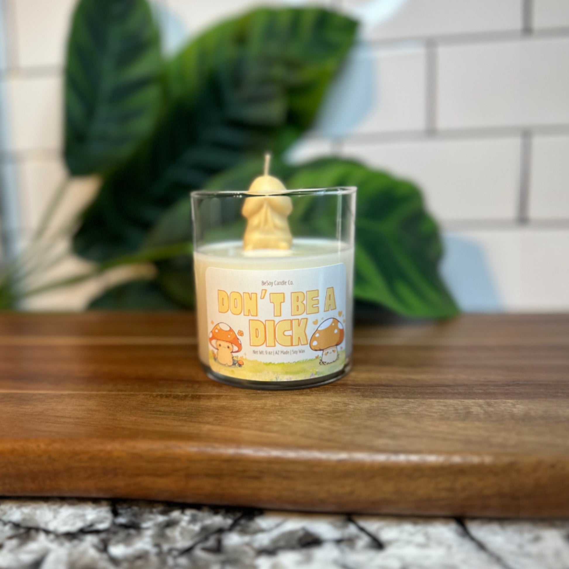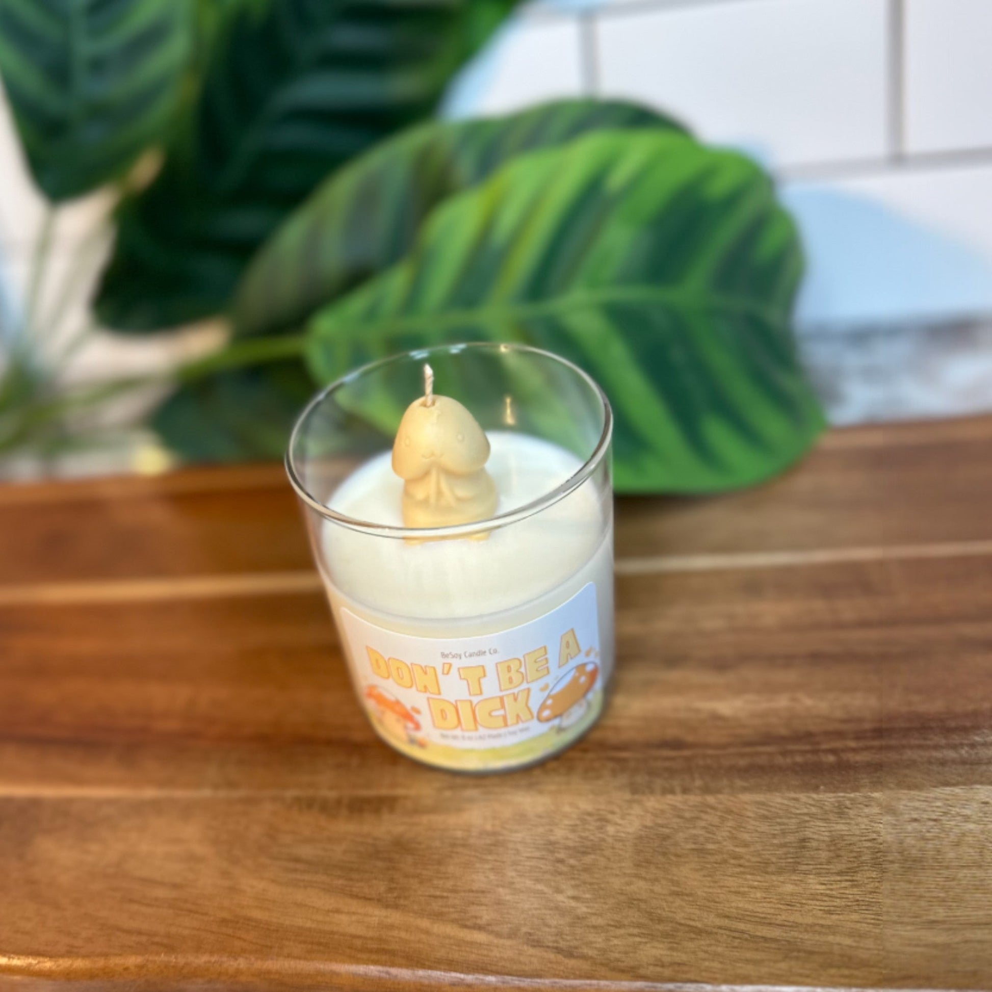 This candle is the perfect reminder to not be a di*k. Scented with a refreshing blend of sea salt and orchid, it will fill your space with a calming aroma. Let this quirky candle be your daily motivation to be a better person.
