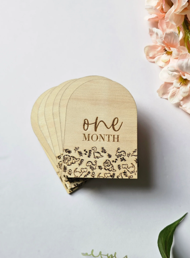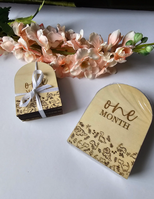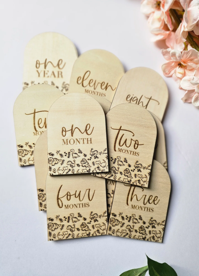 Wooden laser engraved arch Milestone markers for baby Milestone photos.