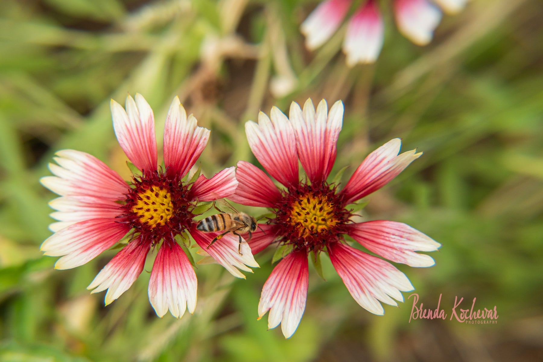 Photograph of Flowers & Bee in a Mat ready for framing. Finished size is 7" x 5".