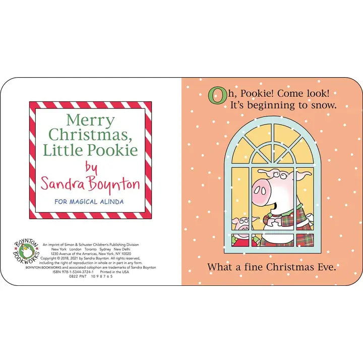 [Little Simon] “A fine stocking stuffer or an ideal Christmas Eve read.” —Kirkus Reviews Celebrate Christmas with Little Pookie in this captivating board book from Sandra Boynton. It’s Christmas Eve! Join Mom and her little Pookie as they bake cookies, decorate the house, sing with friends and family—and at last settle down to sleep. Told and illustrated with Sandra Boynton’s celebrated charm and pizzazz, Merry Christmas, Little Pookie is a classic holiday tale. Come sing all together, And be of good cheer! Merry Christmas! Merry Christmas! And a Happy New Year!