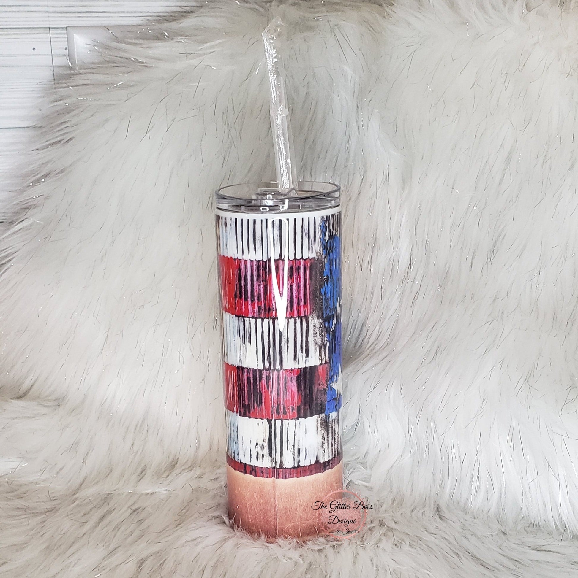 Patriotic Bu.ll.et - 20 oz Skinny - Glitter Boss