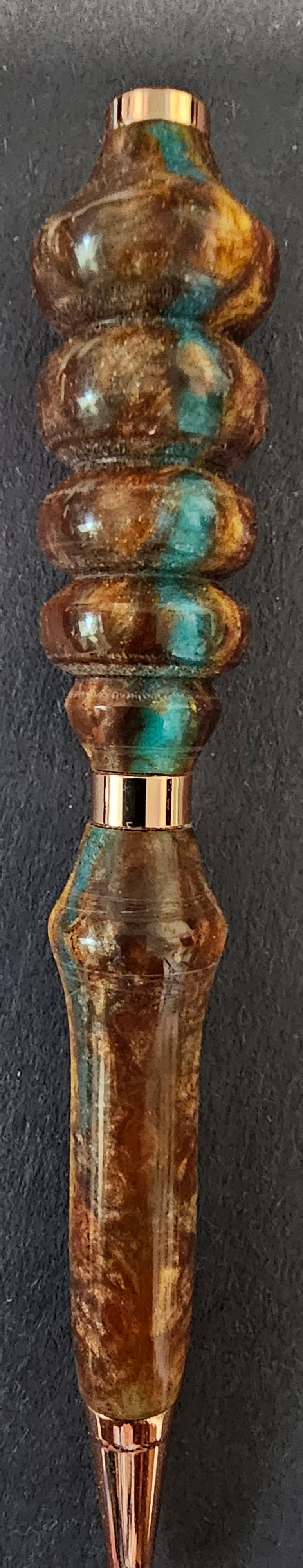 Ball Point Pens-Brown with Teal Resin Black ink