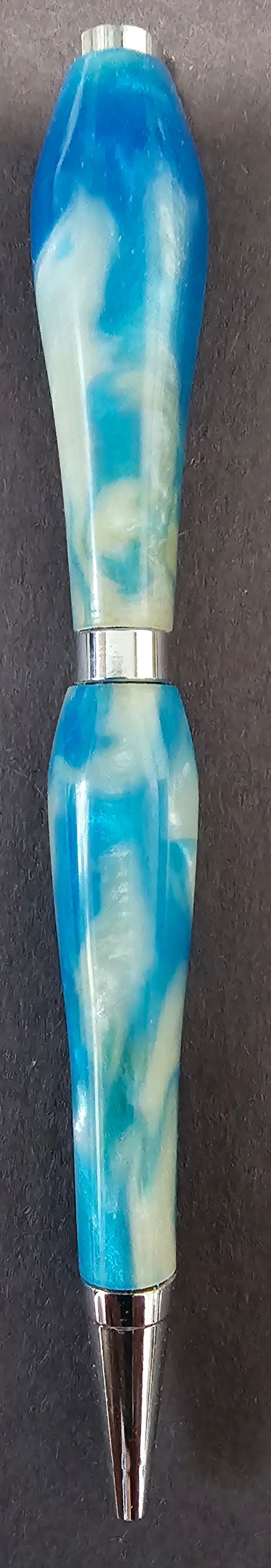 Ball Point Pen-Handmade-Resin Blue and White Black ink