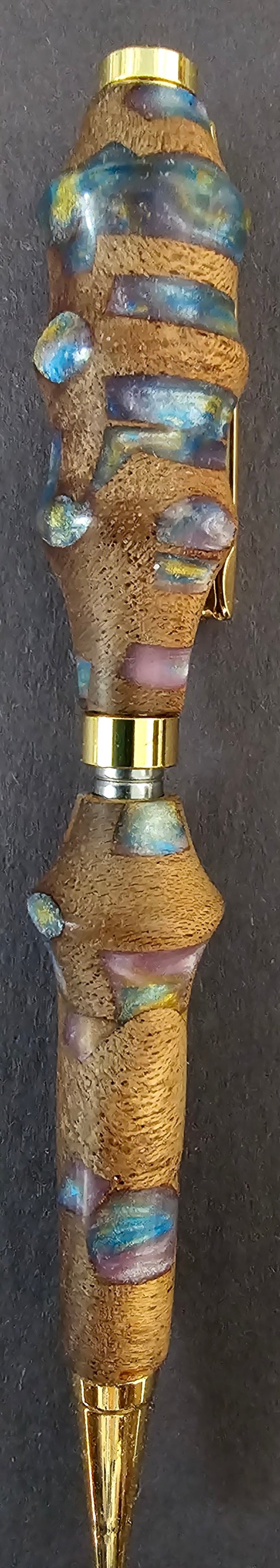 Ball Point Pen-Handmade with Wood and Resin Blue, Purple, Gold Black Ink
