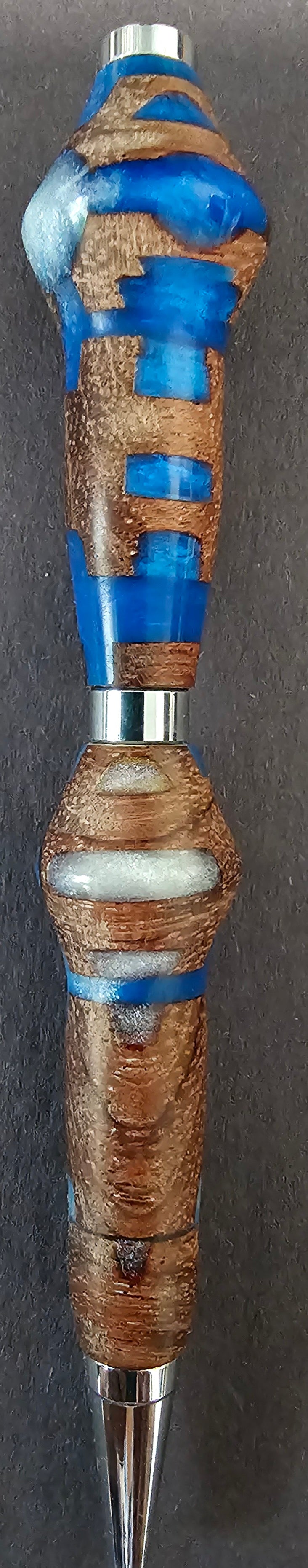 Ball Point Pen-Handmade-Wood Resin blue and white Black Ink