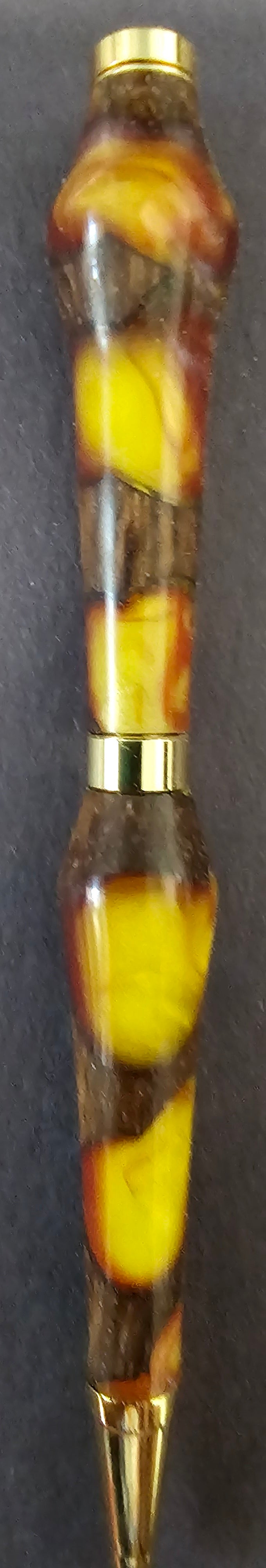 Ball Point Pen-Handmade Leopard Wood with Yellow Resin Black Ink