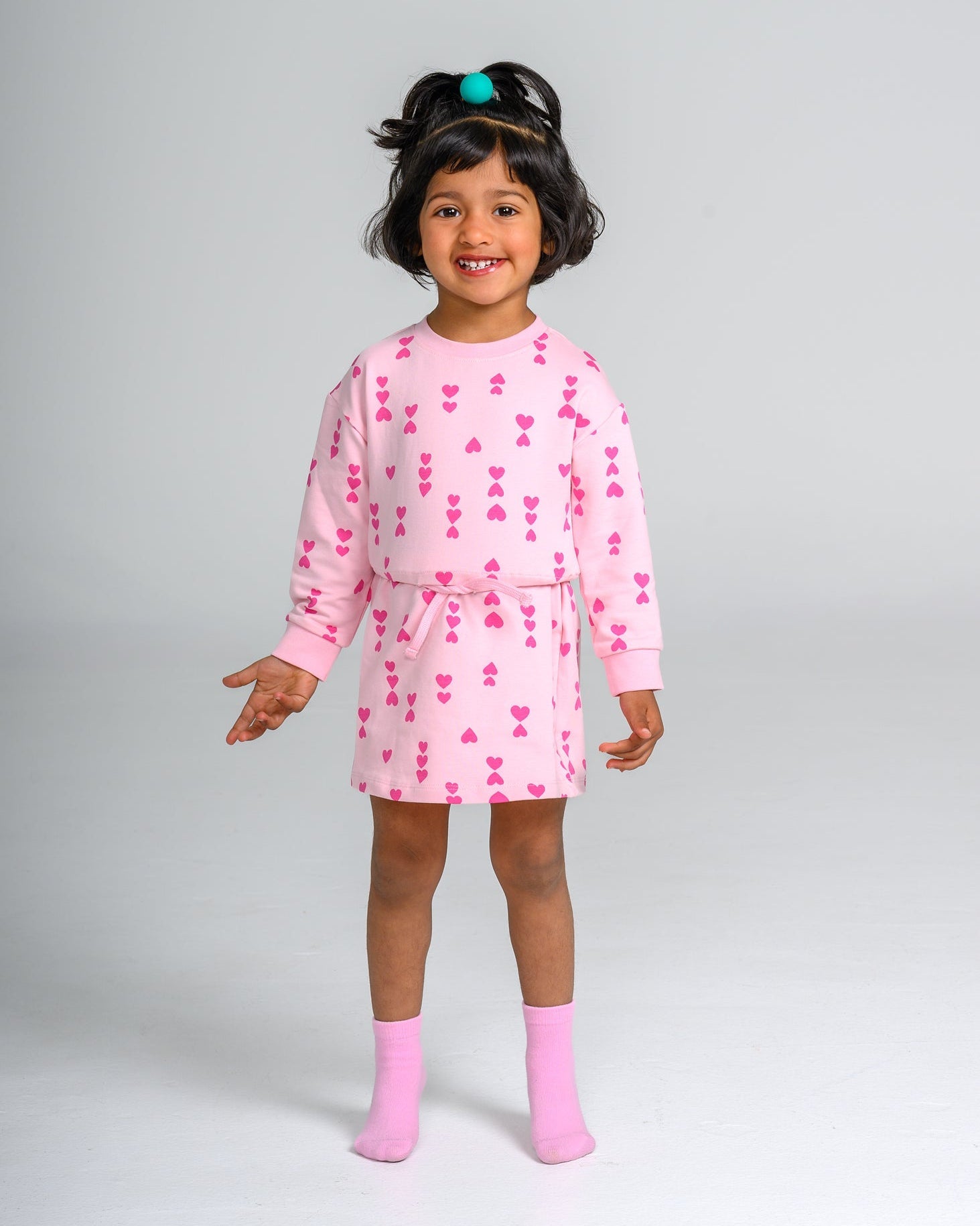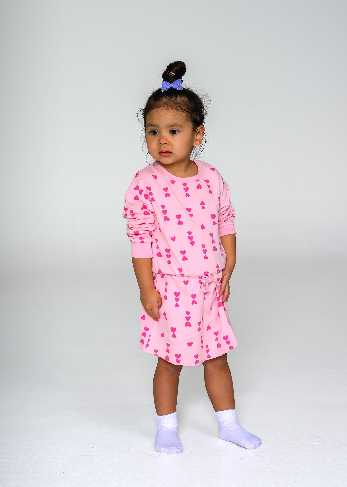 This adorable dress is made from soft, GOTS-certified organic cotton. Featuring a comfy drawstring waist and long sleeves, it's perfect for playtime or special occasions.