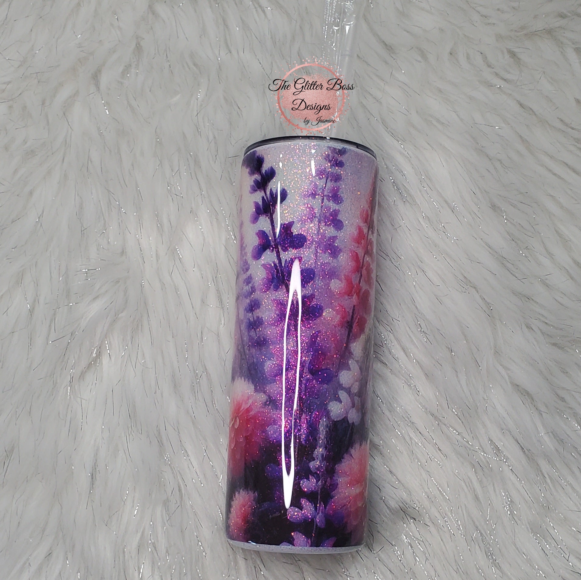 Purple Flowers - 20 oz Skinny - Glitter Boss