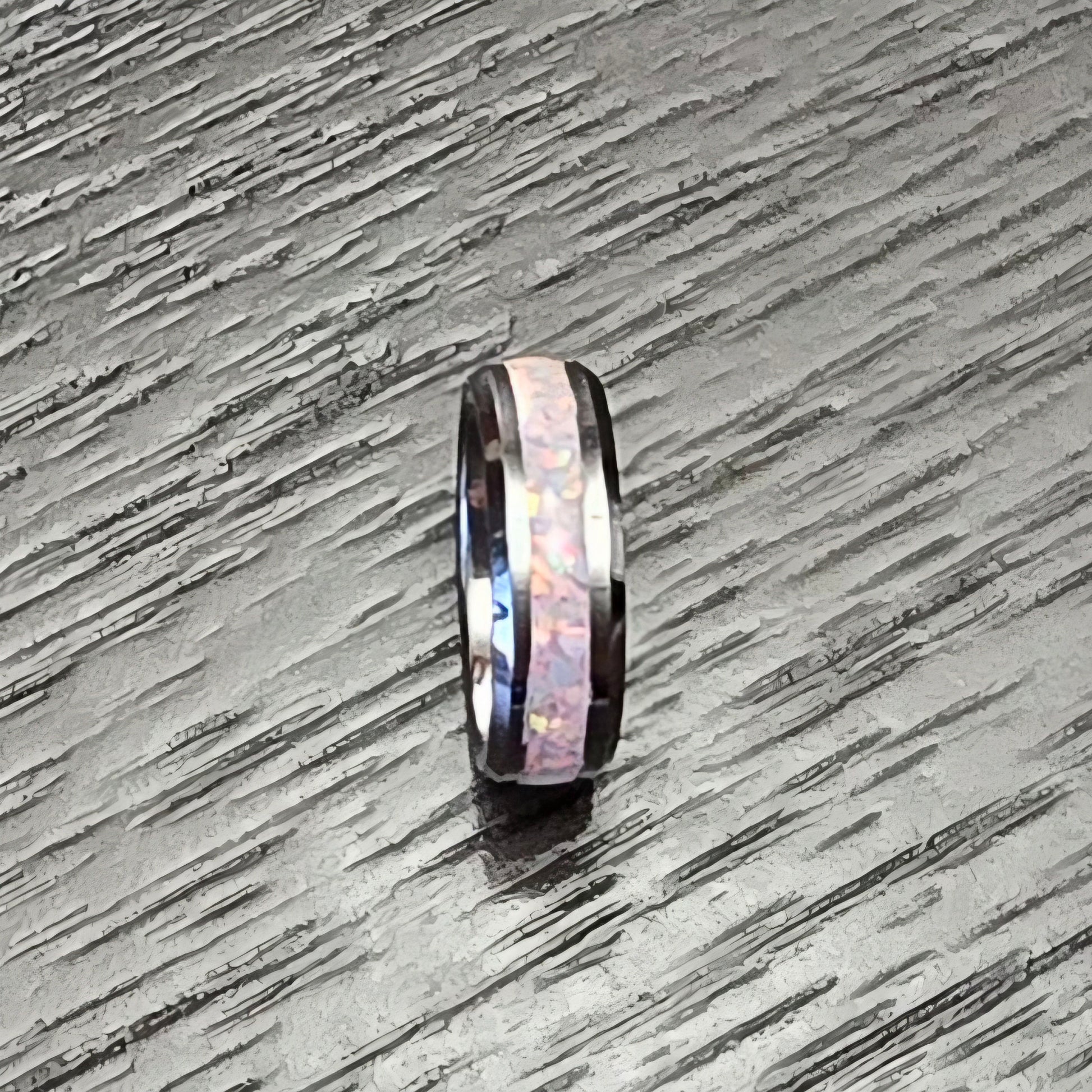 6mm tungsten ring, inlayed with lavender opals, size 4.5