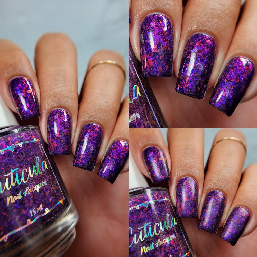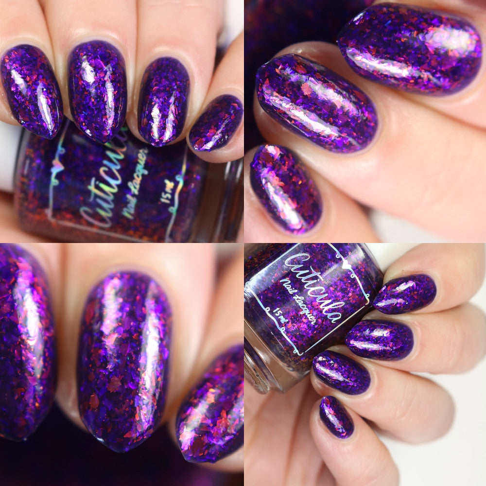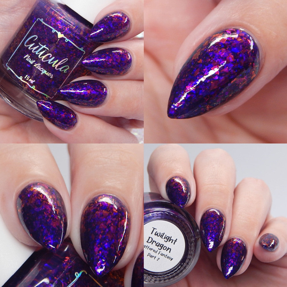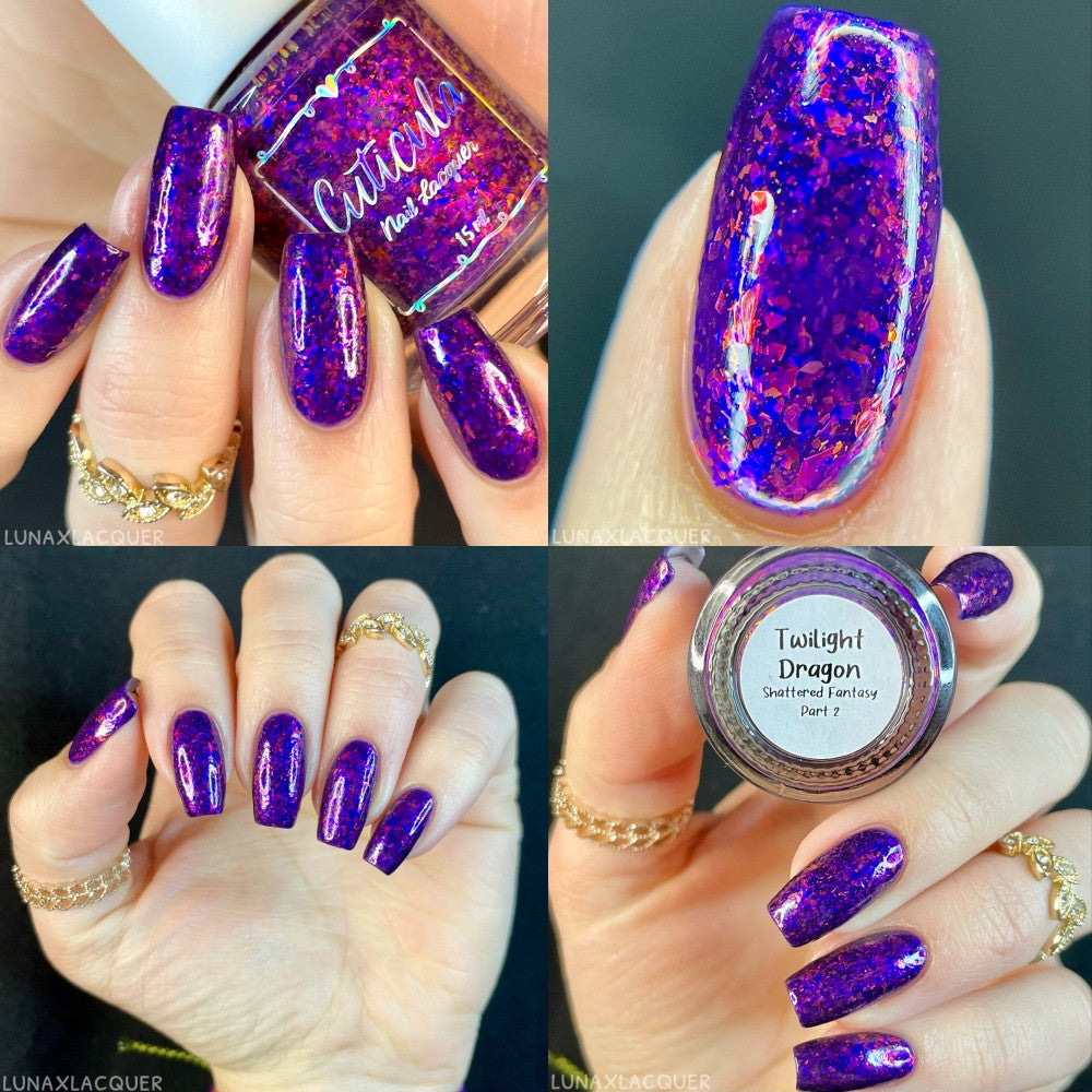 'Twilight Dragon' a purple jelly base with purple/red and blue/purple shifting glass flakes. Perfectly opaque in 3 coats.