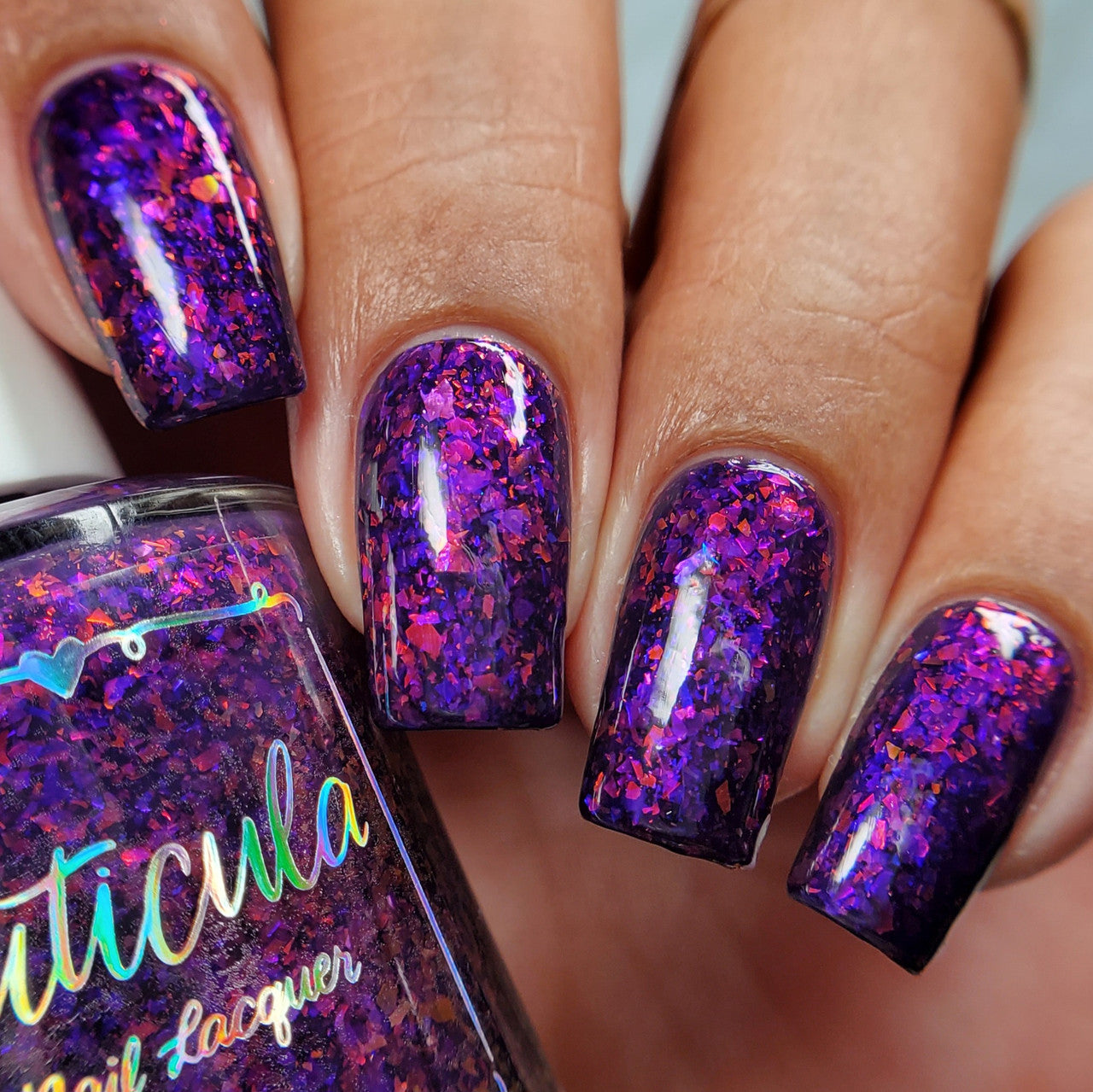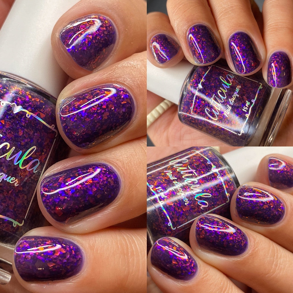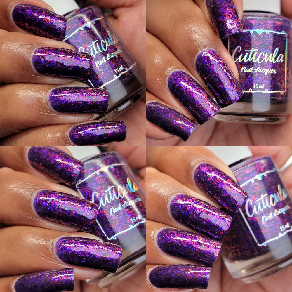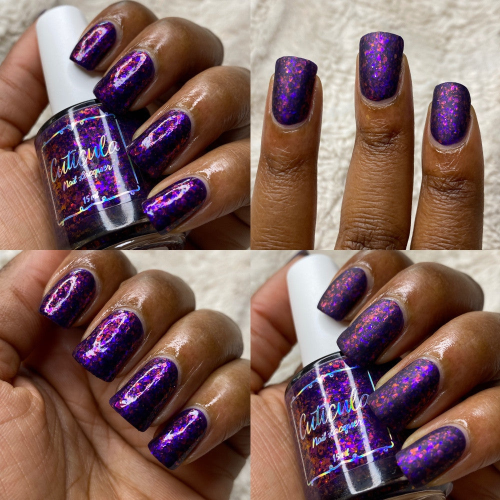 'Twilight Dragon' a purple jelly base with purple/red and blue/purple shifting glass flakes. Perfectly opaque in 3 coats.