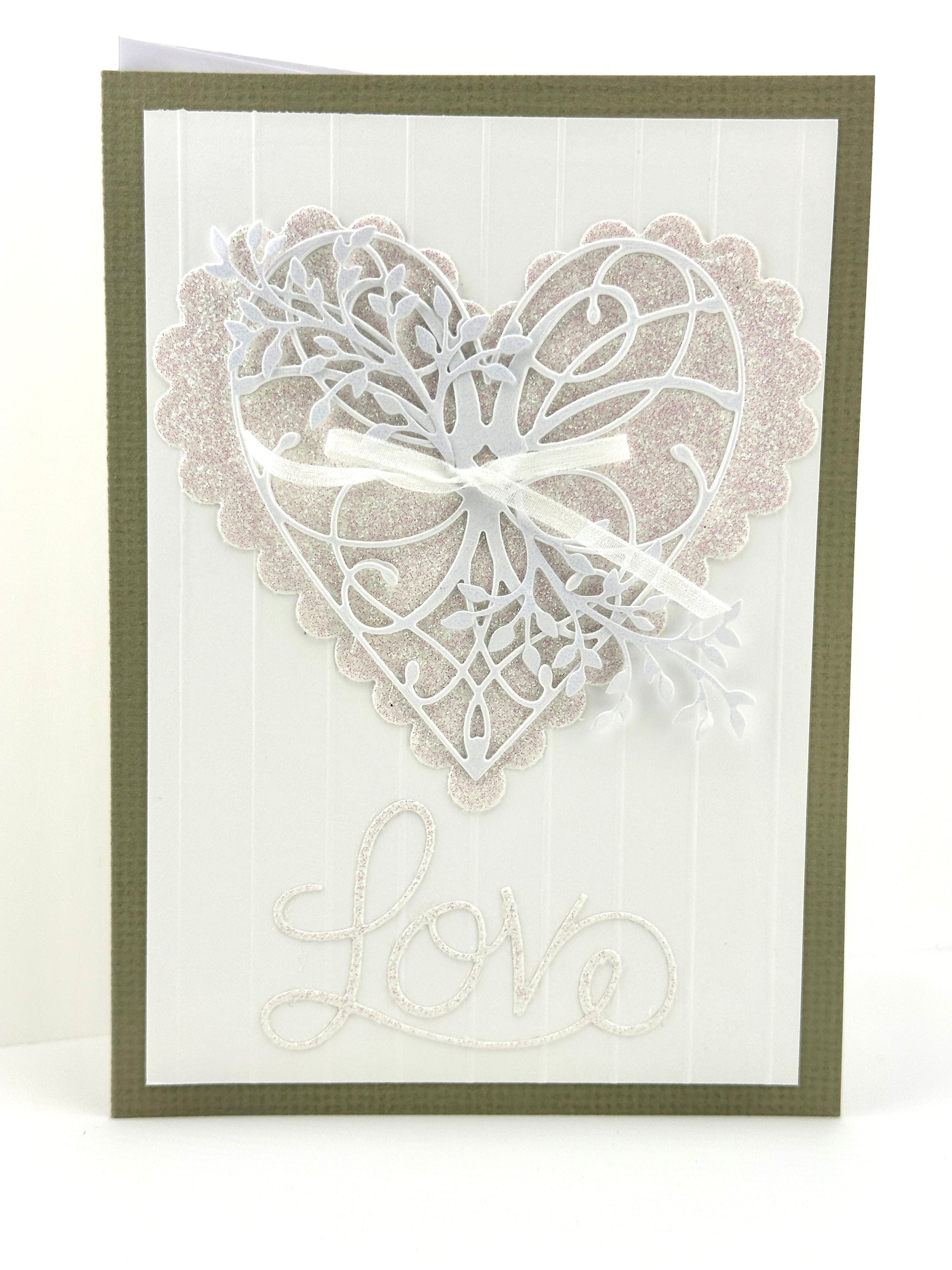 Wedding Card Love with an envelope. Inside text "The best thing to hold onto in life is each other". FRONT COLORS OF HEART & BORDER MAY VARY SLIGHTLY. Approximate size of card is 4.5"x6.5".