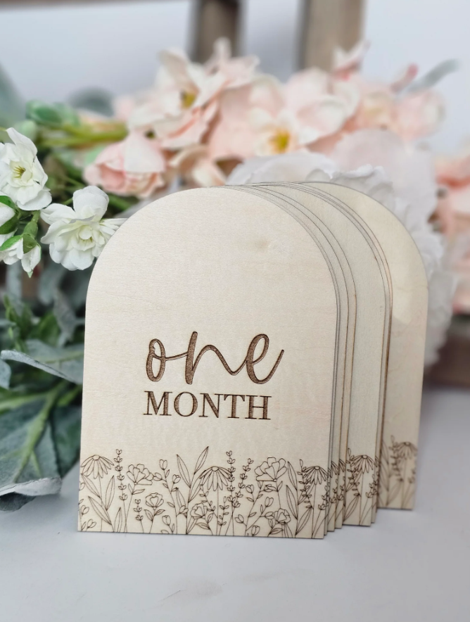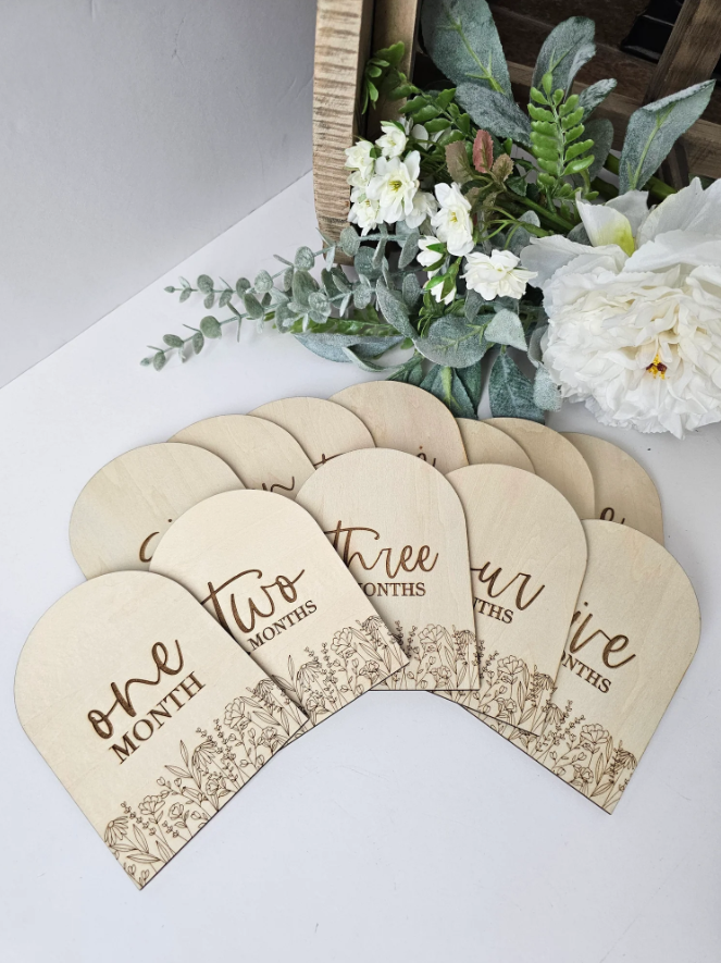 Wooden laser engraved arch Milestone markers for baby Milestone photos.